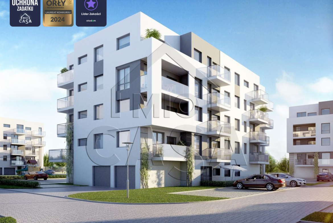 Mieszkańcy mają do dyspozycji zewnętrzne miejsca postojowe przed budynkiem oraz możliwość dokupienia garażu.