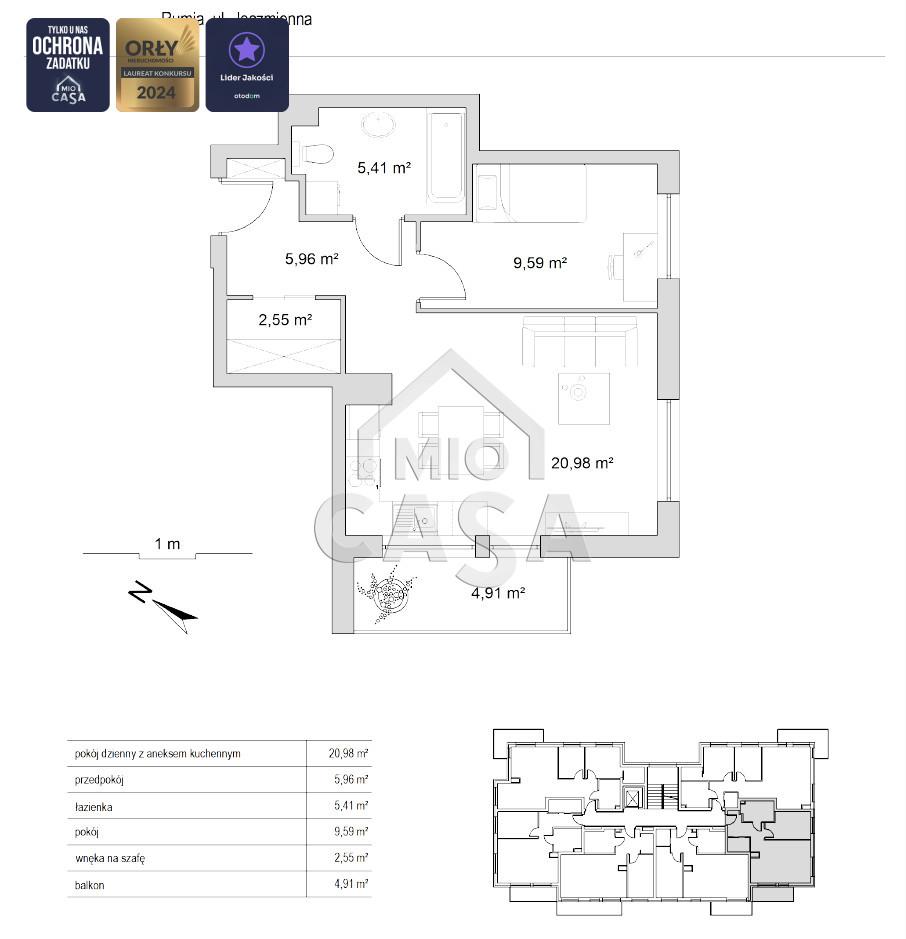 - Pokój dzienny z aneksem kuchennym – 20,98 m²