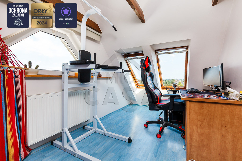 Poddasze: sypialnia z wydzieloną strefą siłowni (możliwość przekształcenia na dwa oddzielne pokoje)