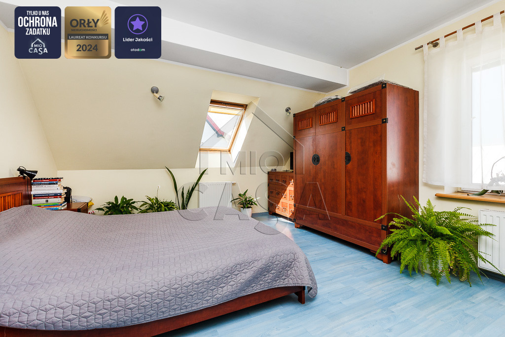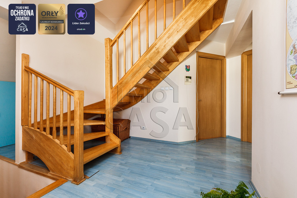 Dom w zabudowie bliźniaczej o powierzchni całkowitej 240 m² (w tym garaż i piwnica), usytuowany na działce o powierzchni 293 m². Wybudowany w 2000 roku, składa się z czterech kondygnacji: