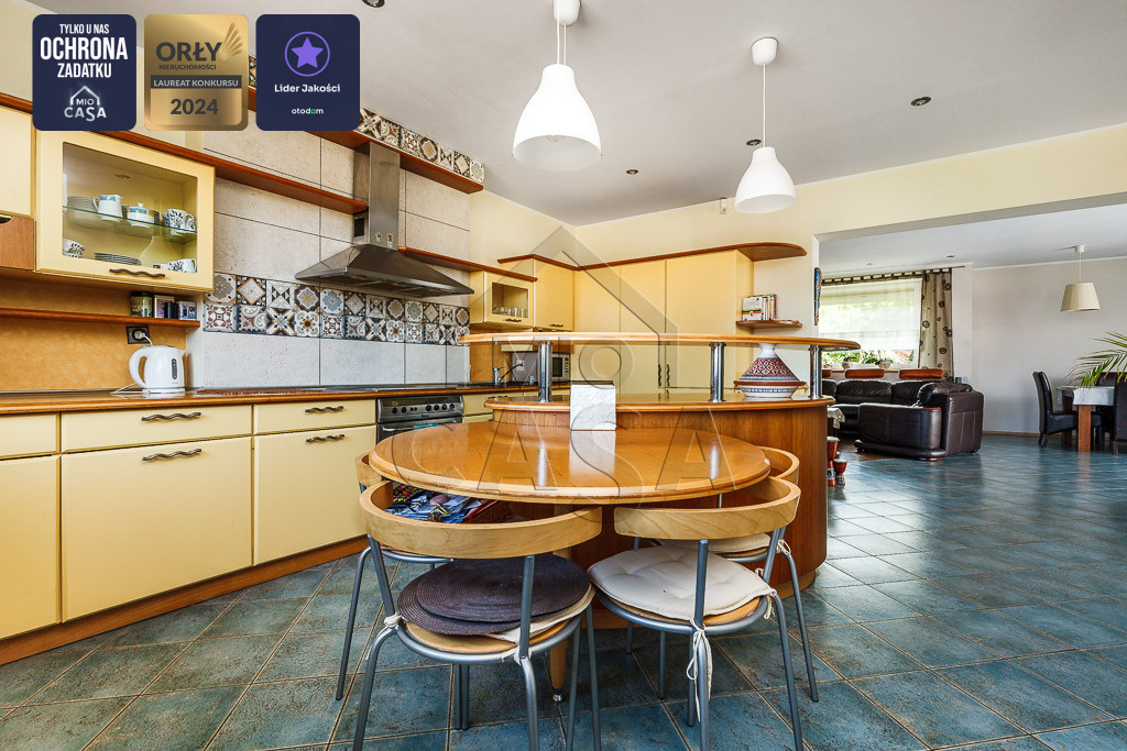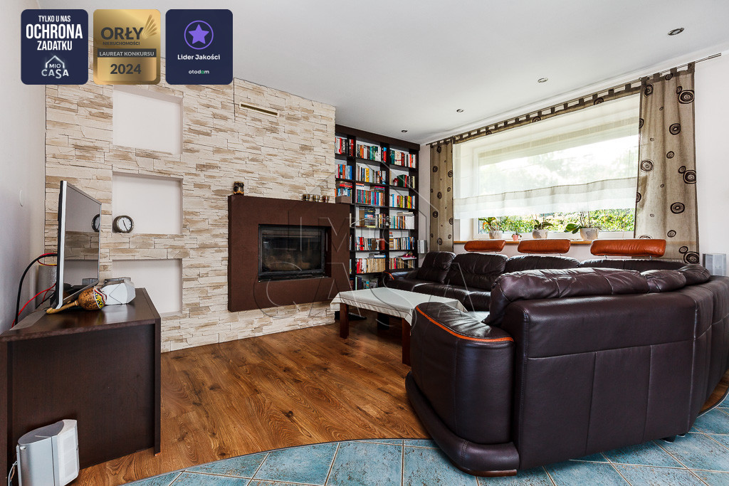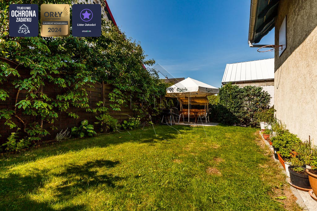 Dodatkowe informacje: Dom jest w pełni wyposażony i gotowy do zamieszkania. Pięknie zagospodarowany ogród z licznymi nasadzeniami, drzewami owocowymi oraz tarasem zachęca do relaksu. Ekspozycja strefy wypoczynkowej na południowy zachód gwarantuje optymalne nasłonecznienie. Ogrzewanie kominkowe oraz ekologiczny piec z podajnikiem na ekogroszek, pellet, drewno, zboże czy brykiet torfowy. Instalacja alarmowa w całym domu