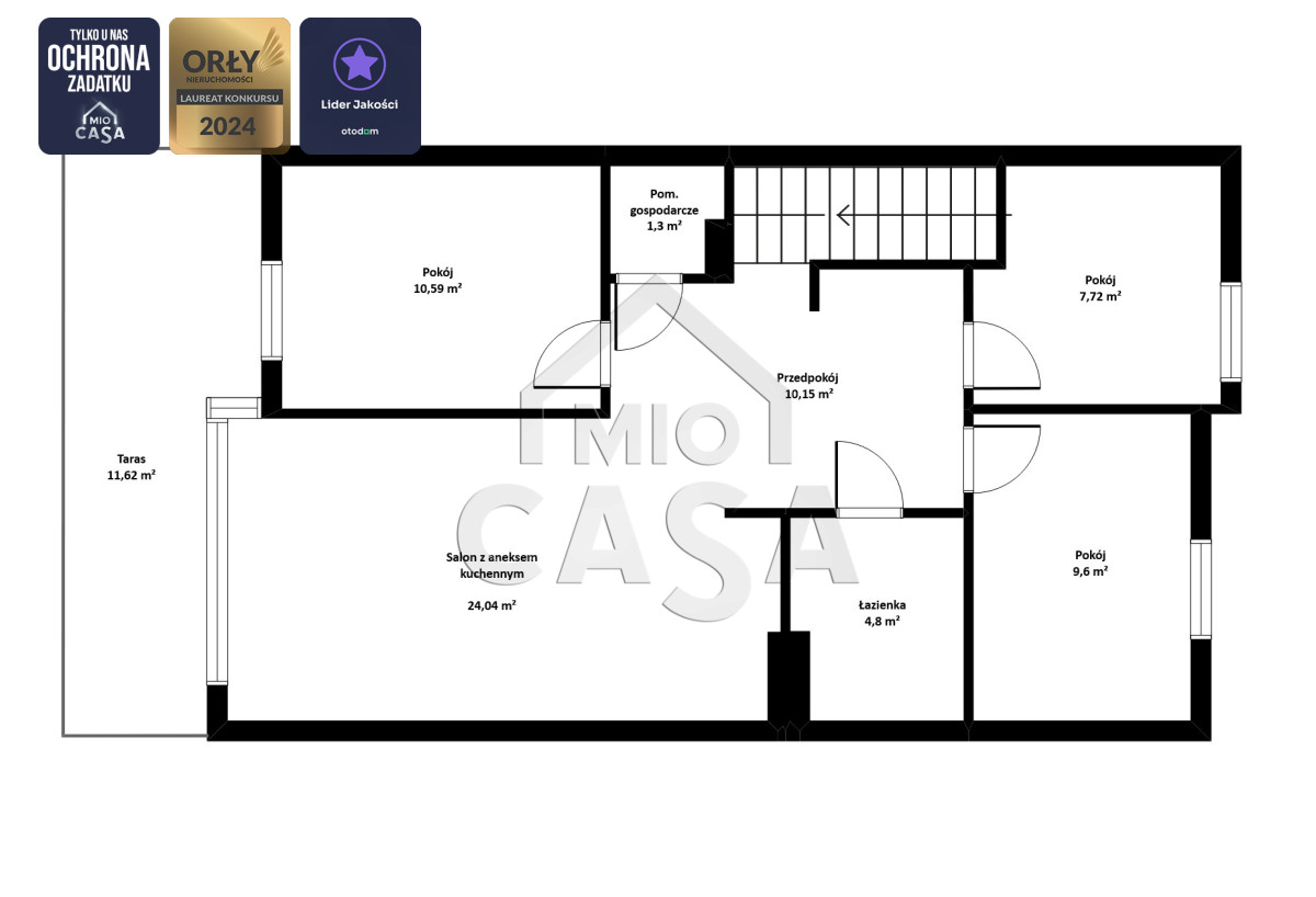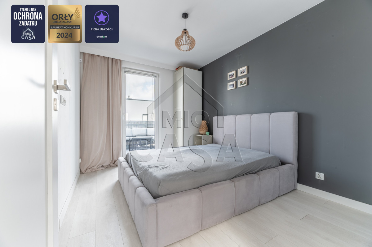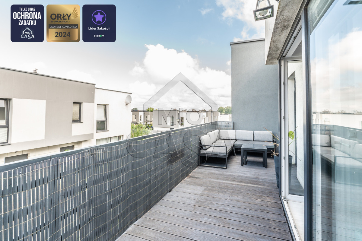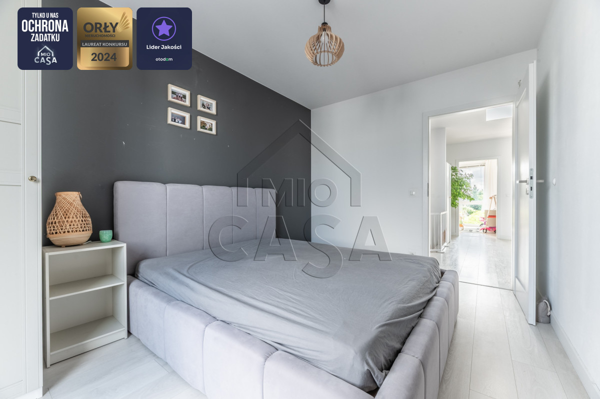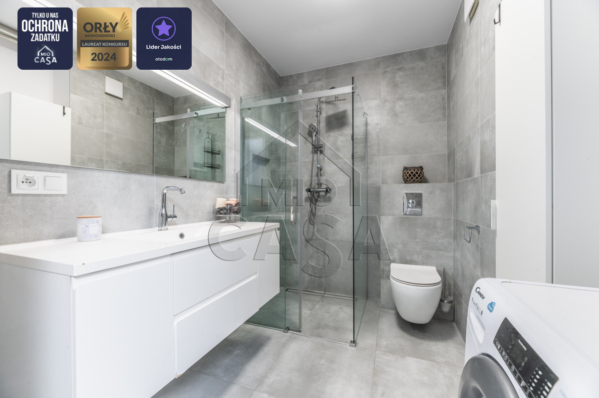 - apartament – znajduje się w nowoczesnej zabudowie szeregowej na pierwszym piętrze. Jego powierzchnia to 74 m2, w skład których wchodzą: przestronny salon z aneksem kuchennym, sypialnia, dwa pokoje zaaranżowane na pokoje dziecięce, łazienka, pomieszczenie gospodarcze oraz unikatowy, naprawdę duży taras. Mieszkanie posiada ekspozycję wschodnią oraz zachodnią – światło do południa jest od strony dwóch pokoi dziecięcych, natomiast przez całe popołudnie znajduje się po stronie salonu, sypialni oraz tarasu. Sprawia to doświetlenie ciepłym, intymnym i sprzyjającym relaksowi światłem. Okna w każdym z pomieszczeń sięgają od podłogi aż po sufit a w samym salonie znajdują się na całej ścianie – dzięki temu ekspozycja słoneczna wykorzystana jest maksymalnie. W korytarzu dodatkowo zainstalowany jest świetlik. Na taras można wyjść zarówno z salonu jak i sypialni. Apartament jest komfortowy, jasny i ciepły, został urządzony ze smakiem, posiada unikatowy charakter. Znajdziemy tu ogrzewanie gazowe – podłogowe, które w tym wypadku będzie miało oszczędny charakter. Wynika to z faktu sąsiadów po bokach ale i tych z parteru, innymi słowy mieszkanie jest grzane z każdej strony. Na osiedlu zawiązana jest wspólnota – miesięczna opłata wynosi 180 zł i obejmuje zarządzanie częściami wspólnymi, fundusz remontowy i wywóz śmieci. Pozostałe opłaty to standardowe media według zużycia. Nowy właściciel będzie miał możliwość wprowadzenia się po około 2-3 tygodniach od momentu umowy końcowej.