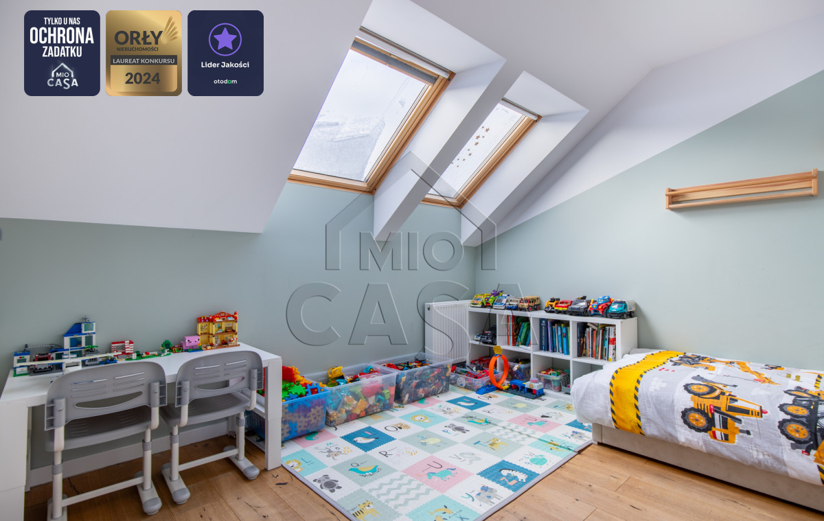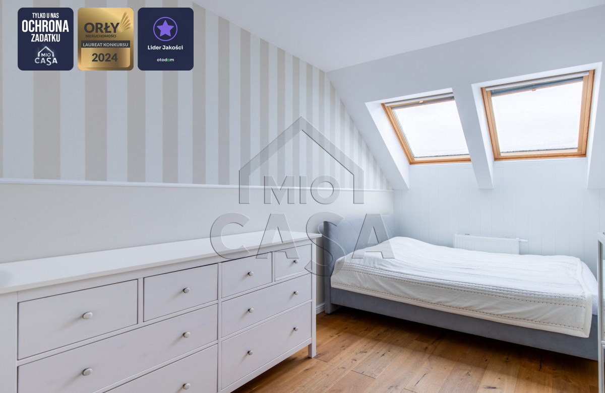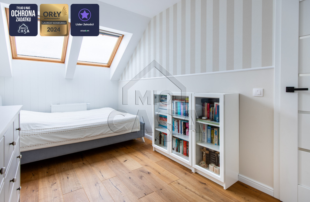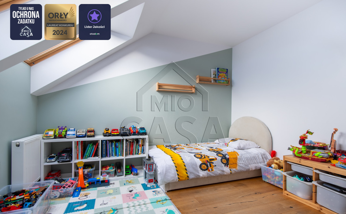 Do mieszkania wchodzi się własną klatką schodową, w której znajduje się przestrzeń na małe pomieszczenie gospodarcze/garderobę – idealne do przechowywania ubrań zimowych, butów, czy walizek. Na pierwszym piętrze znajduje się bardzo duży salon z nowoczesnym aneksem kuchennym i wyjściem na balkon, łazienka z prysznicem, pokój dziecięcy oraz sypialnią. Dodatkową przestrzenią do wykorzystania na sypialnie lub gabinet jest użytkowe poddasze, na które można dostać się drewnianymi schodami. Ekspozycja okien na dwie strony świata, dzięki czemu mieszkanie jest dobrze oświetlone o każdej porze dnia. Dzięki swojej funkcjonalności, mieszkanie można zaaranżować zgodnie ze swoimi potrzebami. Przed wejściem do mieszkania znajduje się miejsce postojowe dla samochodu.