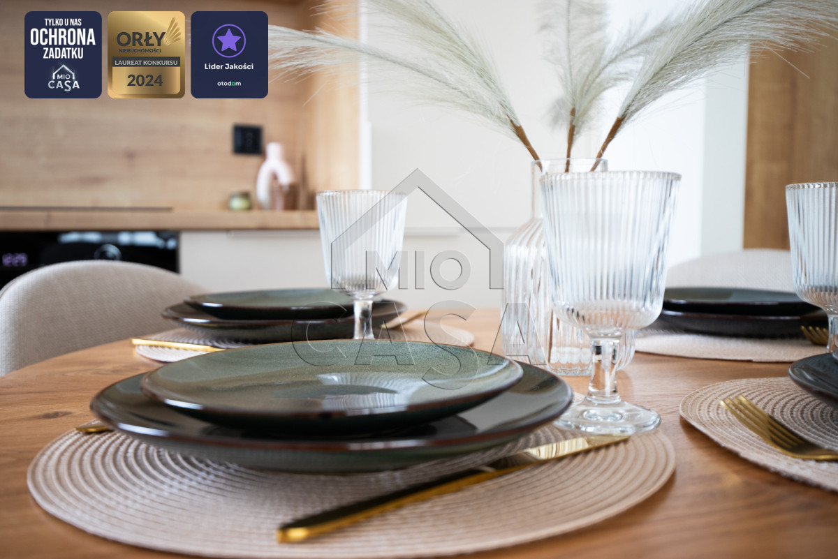 - do wykończenia użyto wysokiej klasy materiałów i sprzętu, znajdziemy tu meble robione na wymiar bazujące na firmie Egger z wyposażeniem Blumm, najnowszy sprzęt Whirlpool oraz Beko, a także farby odporne na ścieranie Tikkurila,