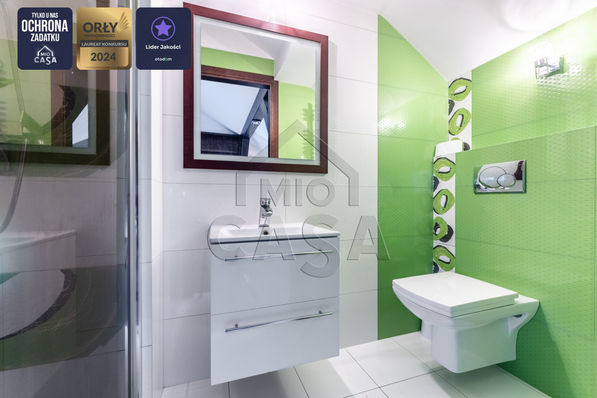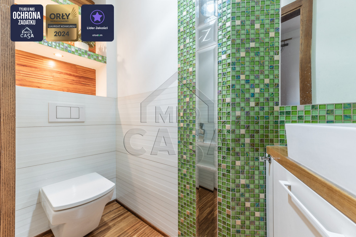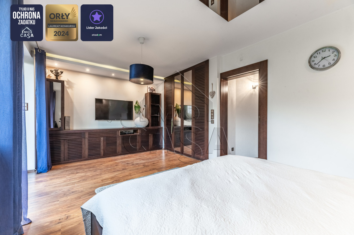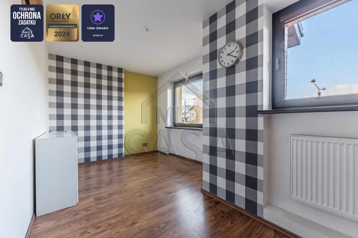 - bezpieczeństwo mieszkania w tym miejscu wspierają drzwi antywłamaniowe, antywłamaniowe rolety okienne sterowane pilotem oraz dwustrefowy alarm.