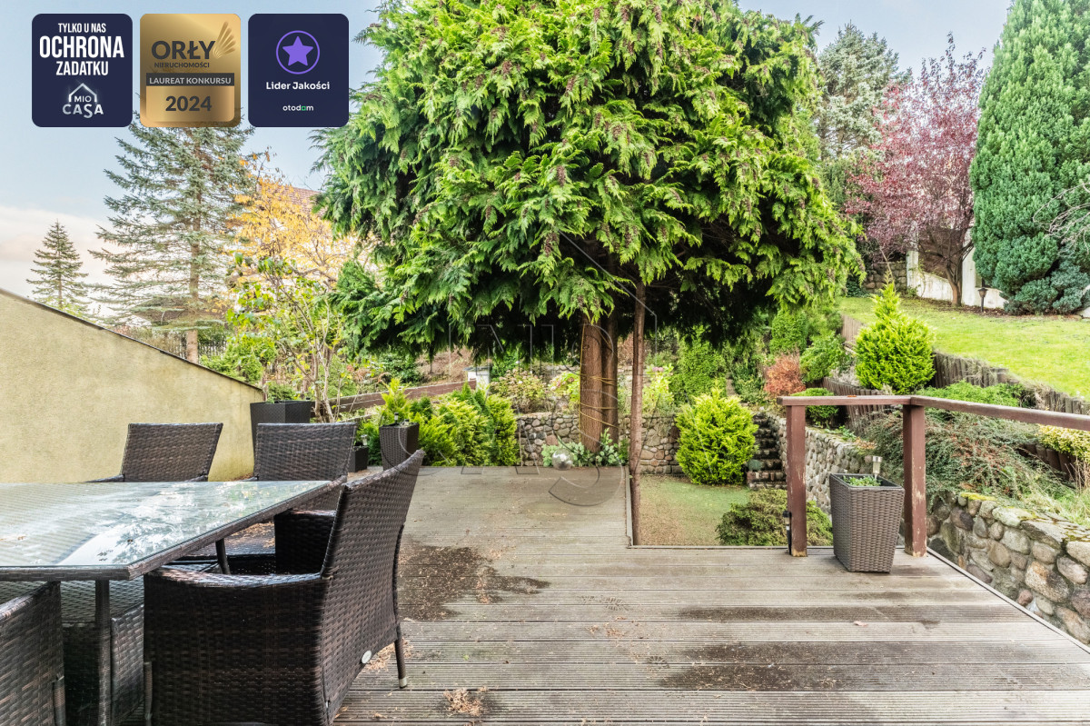 - warto zwrócić uwagę na piękny ogród, w którym znajduje się hortensja, różanecznik, tuje, winogron, jarzębina, jabłoń i bzy,