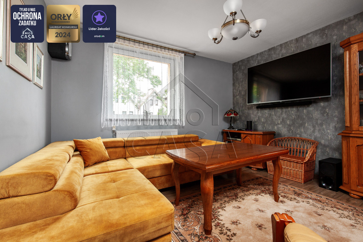 - Przestronny salon z częścią jadalnianą – idealny do codziennego wypoczynku i spotkań z bliskimi,