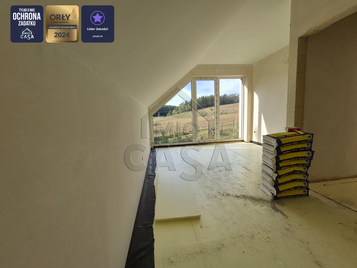 Budynek w stanie deweloperskim ma łączną powierzchnię 208,68 m² (116,91 m² użytkowej) i został posadowiony na imponującej działce o powierzchni 2408 m². Przestrzeń wokół domu daje poczucie swobody, prywatności i nieograniczonych możliwości aranżacyjnych, ogród, strefa relaksu, a może własny sad?