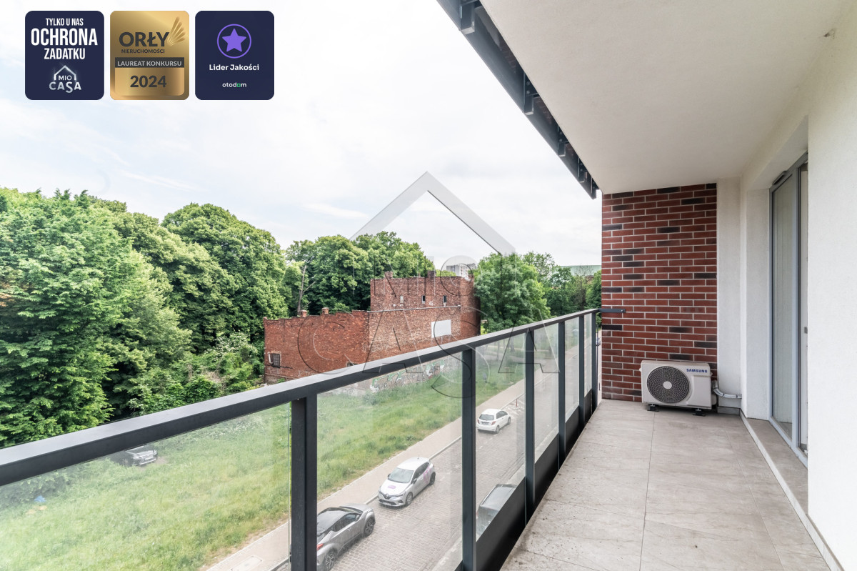 Apartament o powierzchni 71 m2 zlokalizowany jest na trzecim piętrze w nowoczesnym, 6- kondygnacyjnym budynku z 2021 roku. Nieruchomość składa się z: przestronnego salonu otwartego na aneks kuchenny, wyposażone w wysokiej klasy sprzęty AGD i zabudowy wykonane przez stolarza, dwóch sypialni, dwóch łazienek (jedna z wanną, druga z prysznicem). Właściciele zadbali o o najmniejszy detal, dbając o elegancki i spójny wystrój. W mieszkaniu znajduje się przestronny balkon z dwoma wyjściami o pow. 9 m2. Z dodatkowych udogodnień można wymienić bo kominek, antywłamaniowe drzwi zewnętrzne i wideomofon oraz klimatyzację z zamontowaną jednostką zewnętrzną na balkonie.