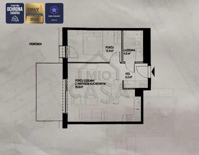 - powierzchnia apartamentu wynosi 48,8 m2, w skład którego wchodzi przestronny, piękny salon z aneksem kuchennym oraz wyjściem na taras i ogródek, przytulna sypialnia z funkcjonalnymi dwoma wejściami, nowoczesna łazienka oraz hol,
