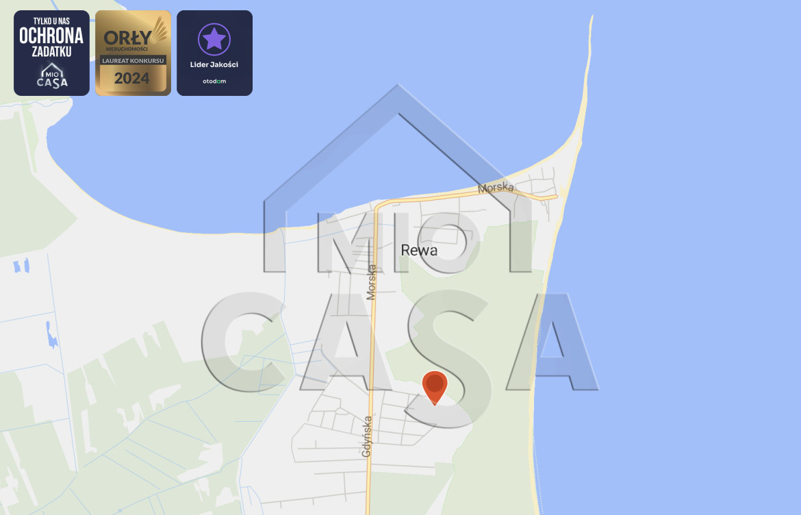 Działka znajduje się w Rewie, spokojnej i bardzo lubianej miejscowości nad Zatoką Pucką. To świetne miejsce dla osób, które marzą o życiu blisko morza. W okolicy są szerokie, czyste plaże oraz popularne tereny spacerowe.