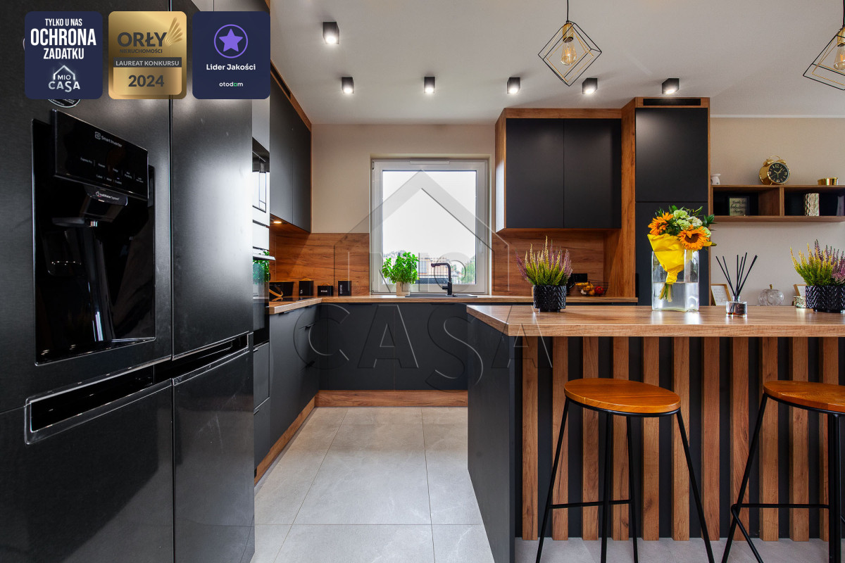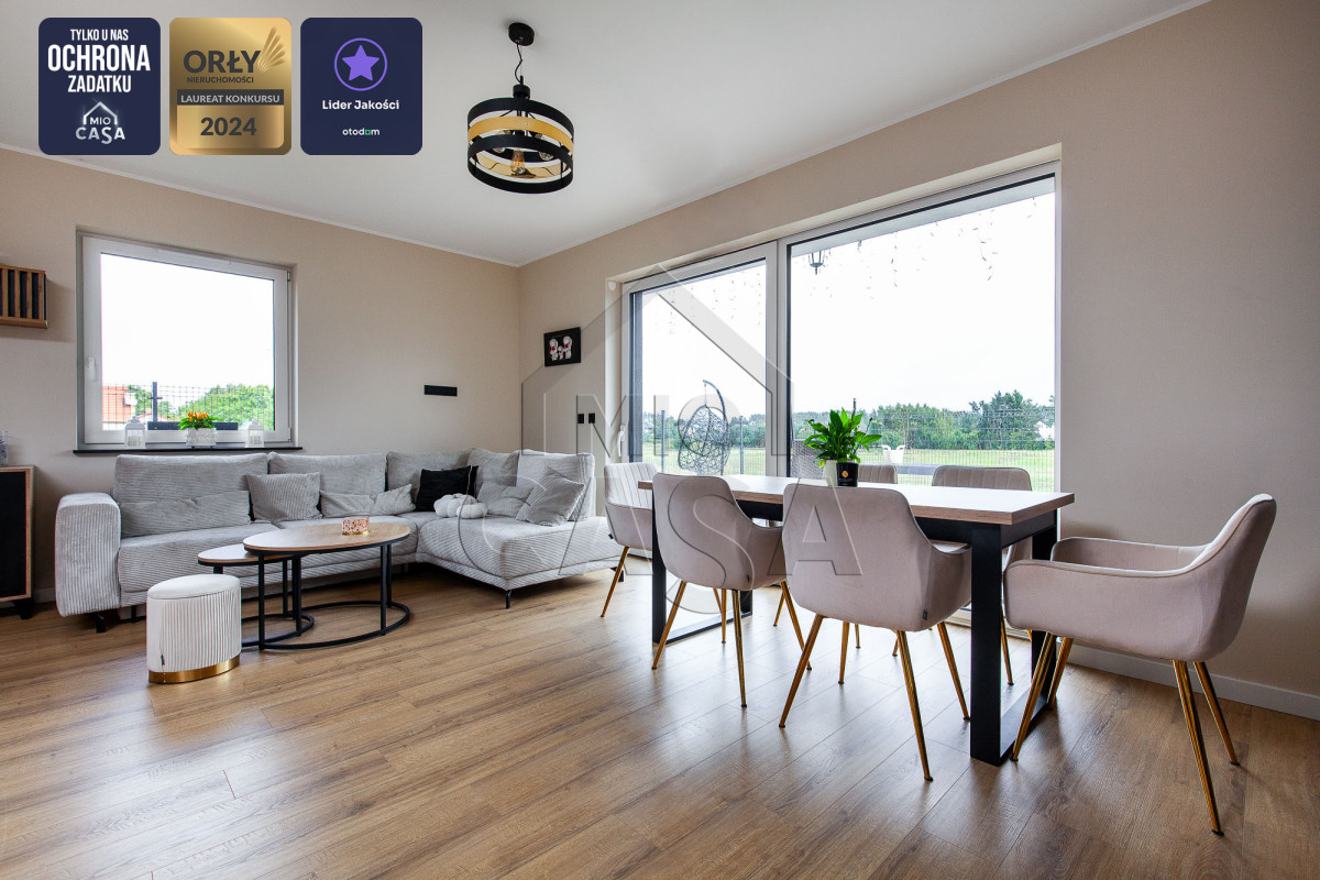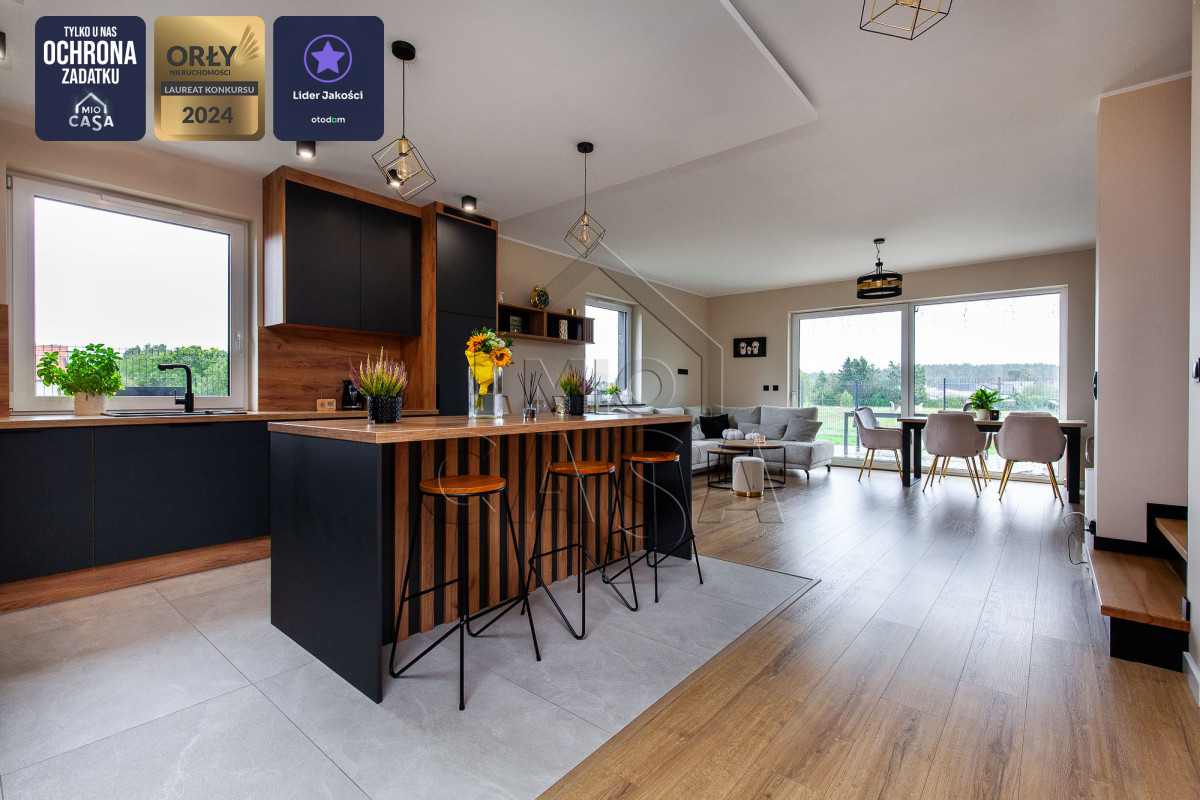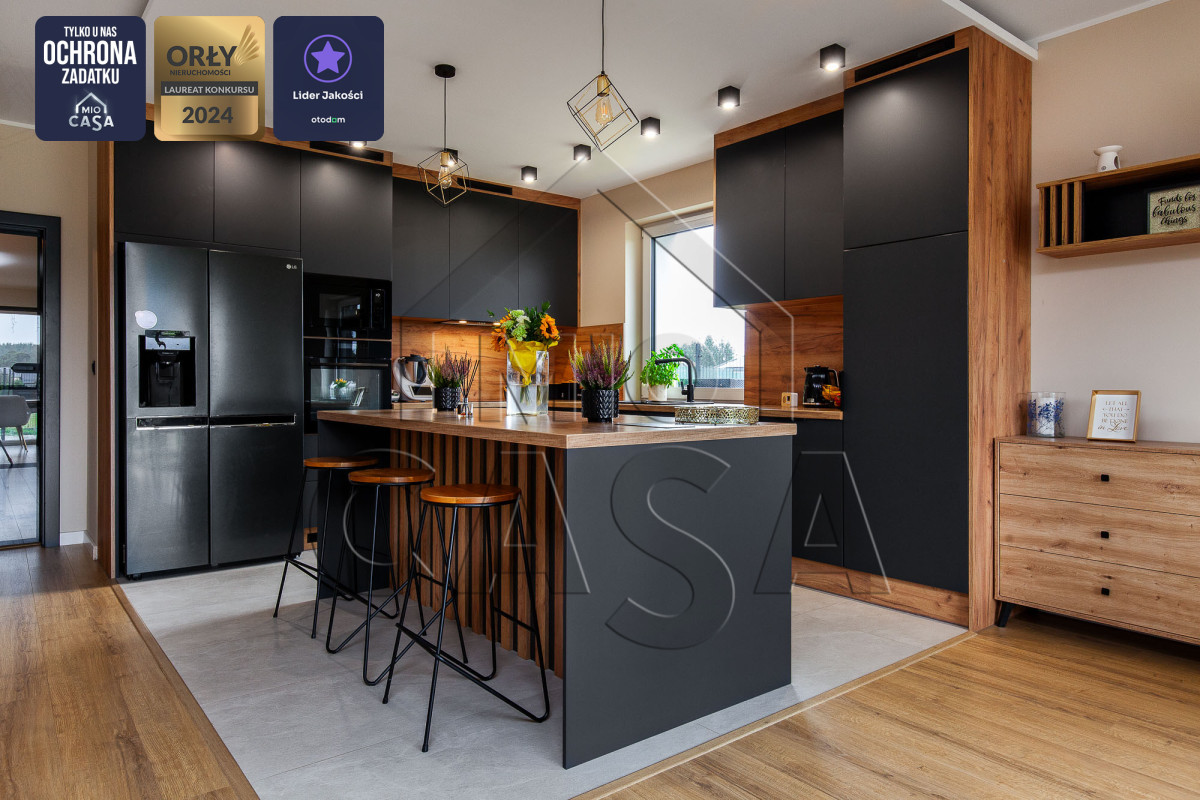 Dom to zaledwie roczny budynek o funkcjonalnym układzie wnętrz i został zaprojektowany z myślą o komforcie rodziny