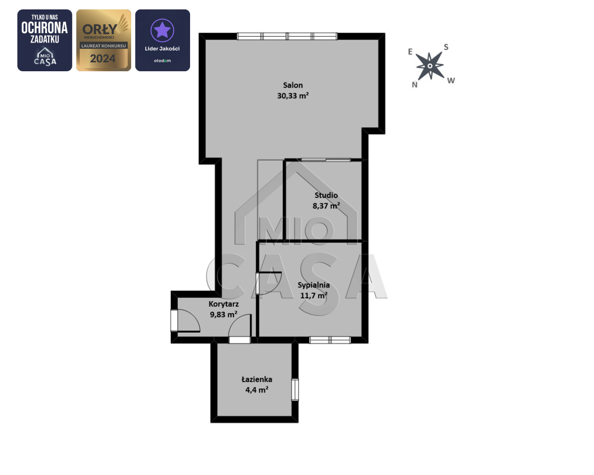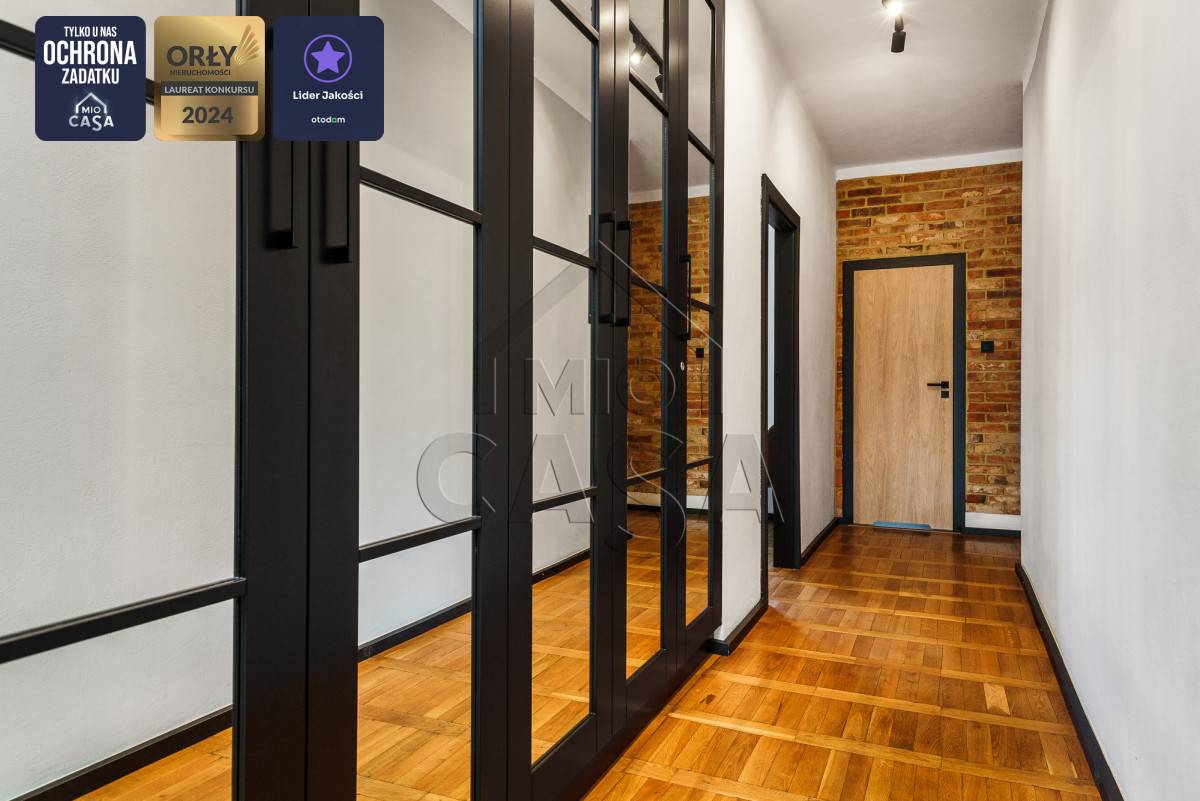 – apartament – jest to wyjątkowa, nieprzeciętna nieruchomość z unikalnym charakterem. Składa się z dużego, przestronnego salonu (30,33 m2) z w pełni wyposażonym aneksem kuchennym; pokoju typu studio (8,37 m2), długiego korytarza (9,83 m2) z szafami w zabudowie, sypialni (11,7 m2) oraz łazienki (4,4 m2). Ekspozycja z salonu jest południowo-wschodnia, w pierwszej części dnia słońce wdziera się do apartamentu przez pokaźne, czteroskrzydłowe okno. Ekspozycja z sypialni jest północno-zachodnia co czyni wyjątkowy klimat poprzez ciepłe, intymne popołudniowe światło.