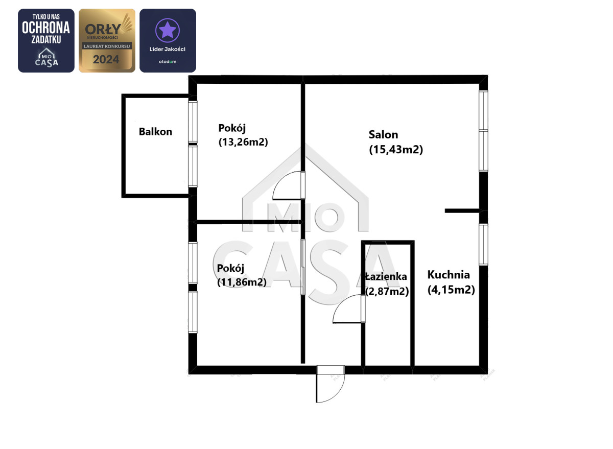 - Dwa oddzielne pokoje – mogą pełnić funkcję sypialni, pokoju dziecka, gabinetu lub garderoby,