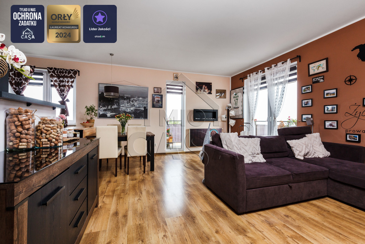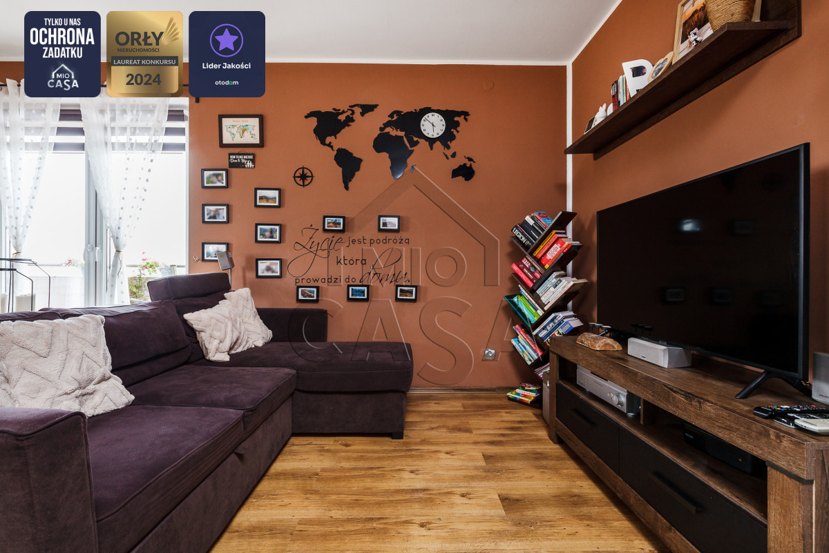 Mieszkanie składa się z przestronnego salonu z aneksem kuchennym i wyjściem na balkon, ustawnej sypialni, łazienki z toaletą oraz funkcjonalnego przedpokoju. Układ jest bardzo ergonomiczny, a ekspozycja południowo-wschodnia zapewnia świetne doświetlenie wnętrz przez cały dzień.