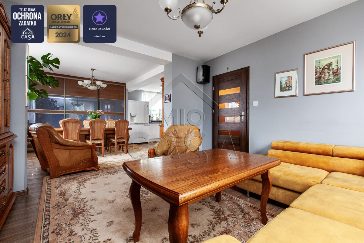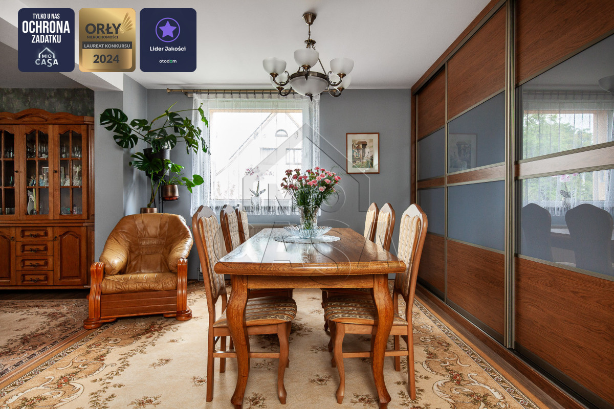 - Przestronny salon z częścią jadalnianą – idealny do codziennego wypoczynku i spotkań z bliskimi,