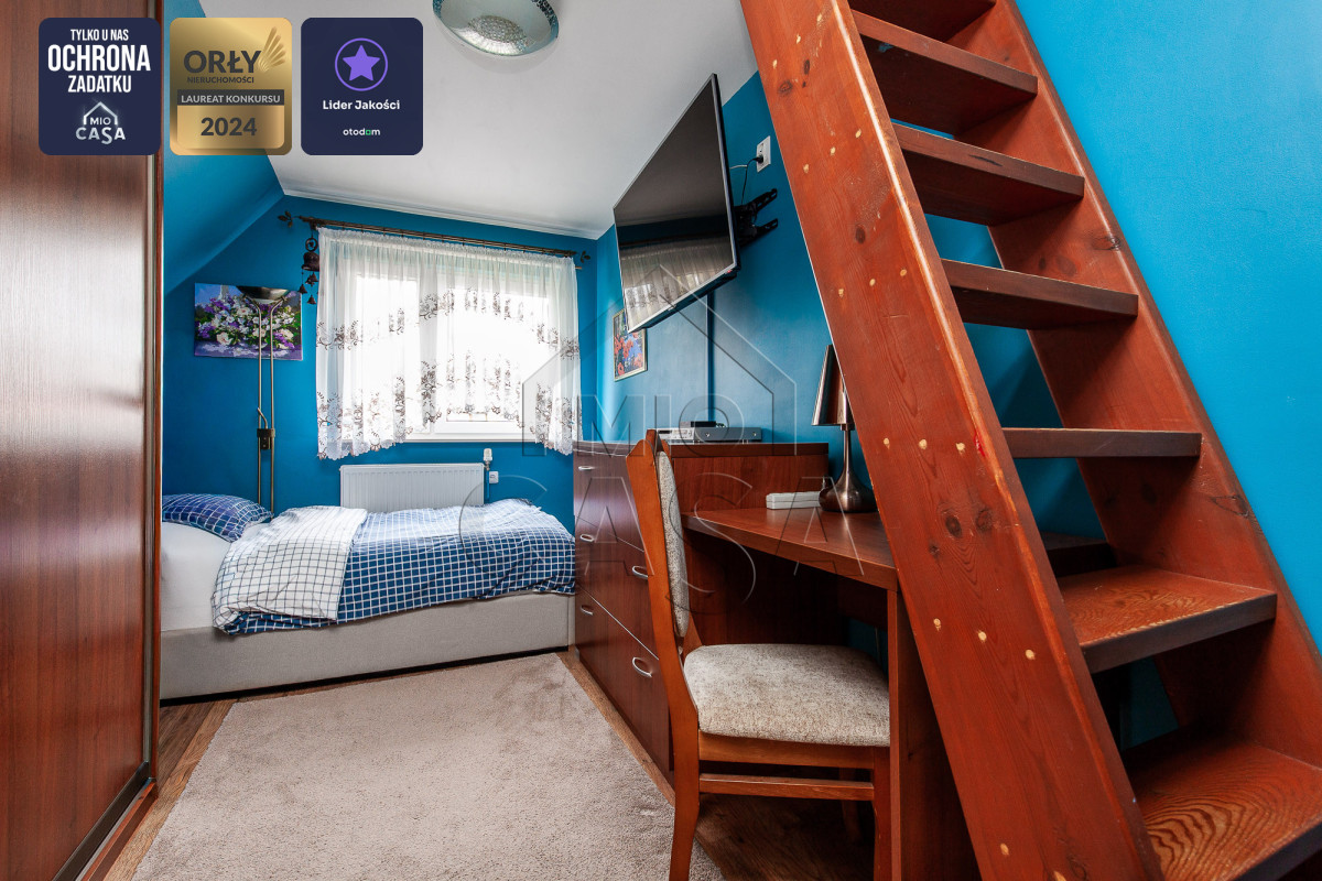 Lokal stanowi piętro i poddasze domu w zabudowie bliźniaczej, posiada niezależne wejście, co zapewnia komfort i pełną prywatność, a dzięki ogrzewaniu pompą ciepła oraz instalacji fotowoltaicznej 10 kWh oferuje praktycznie zerowe koszty eksploatacji.