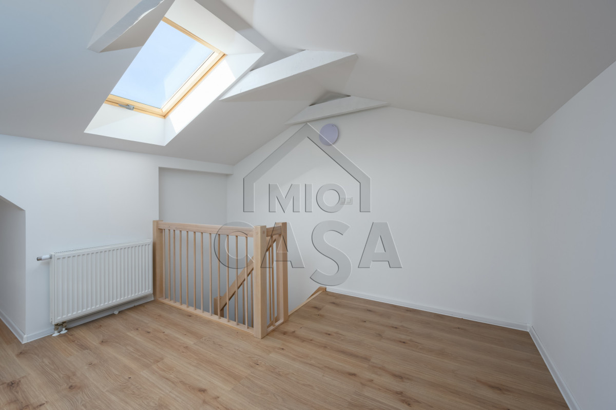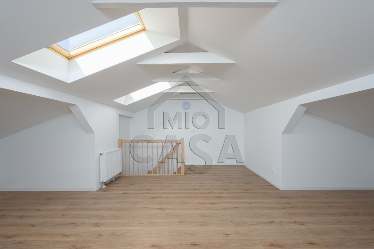2) obszerne poddasze, które jest dobrze oświetlone dziennym światłem. Można tam zaaranżować dużą sypialnie. W najwyższym punkcie jest 2,2 m, a w najniższym 170 m. Wnęki można wykorzystać jako szafy w zabudowie. Wymiary: szerokość ok 2.7m, długość ok 2,33m. Wysokość w najwyższym punkcie to 1,5 i maleje do 0,9m.