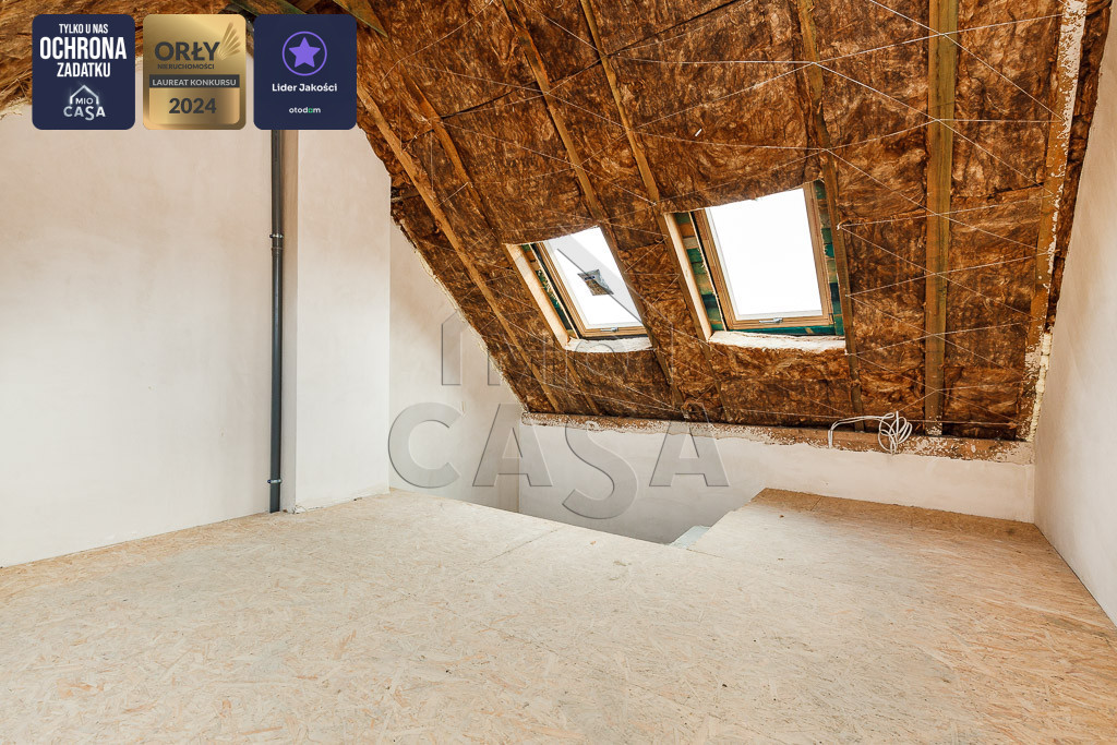 Każdy dom ma 100m2 powierzchni użytkowej oraz poddasze 26m2, które świetnie nadaje się na prywatną sypialnie.