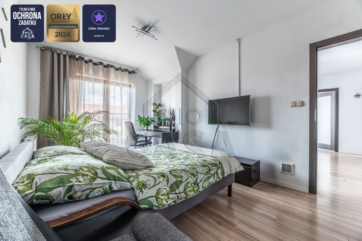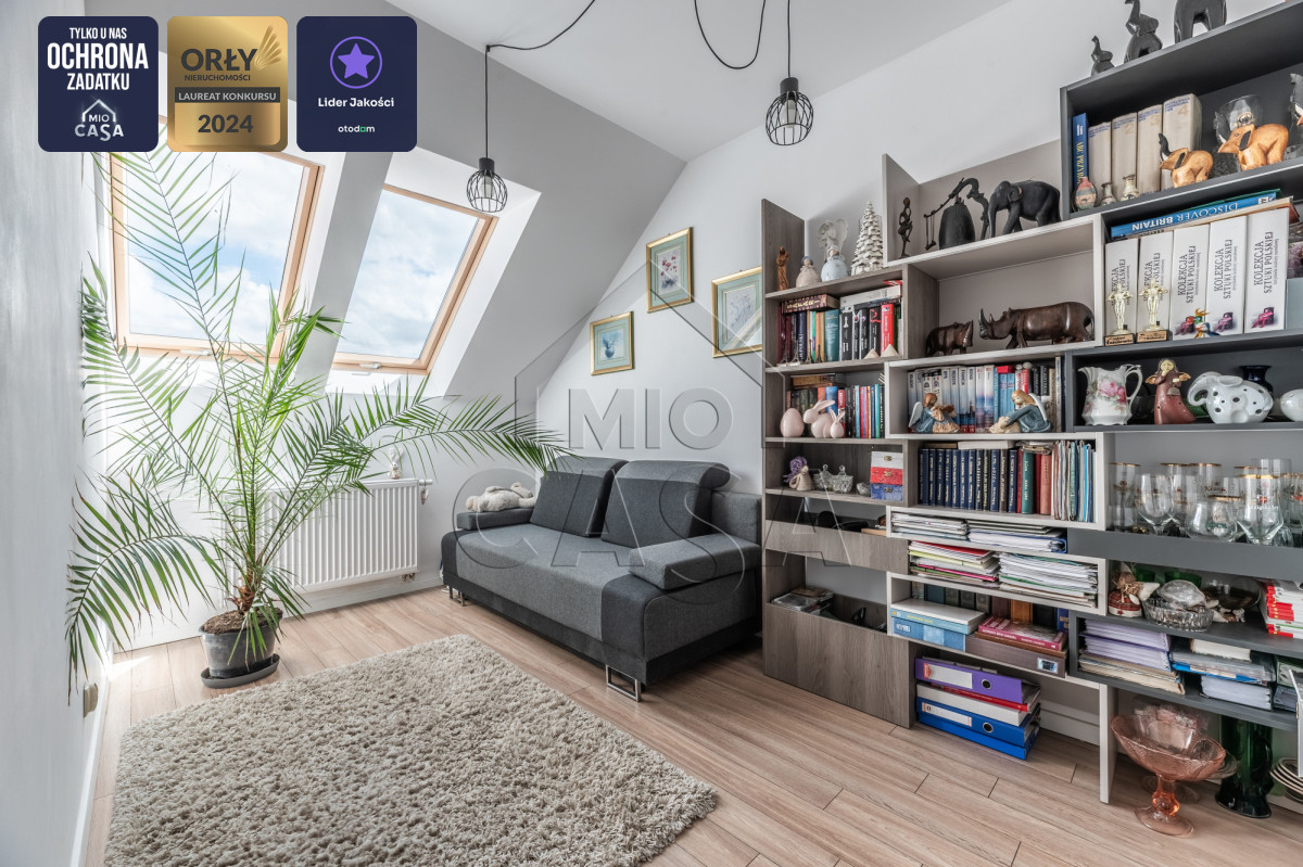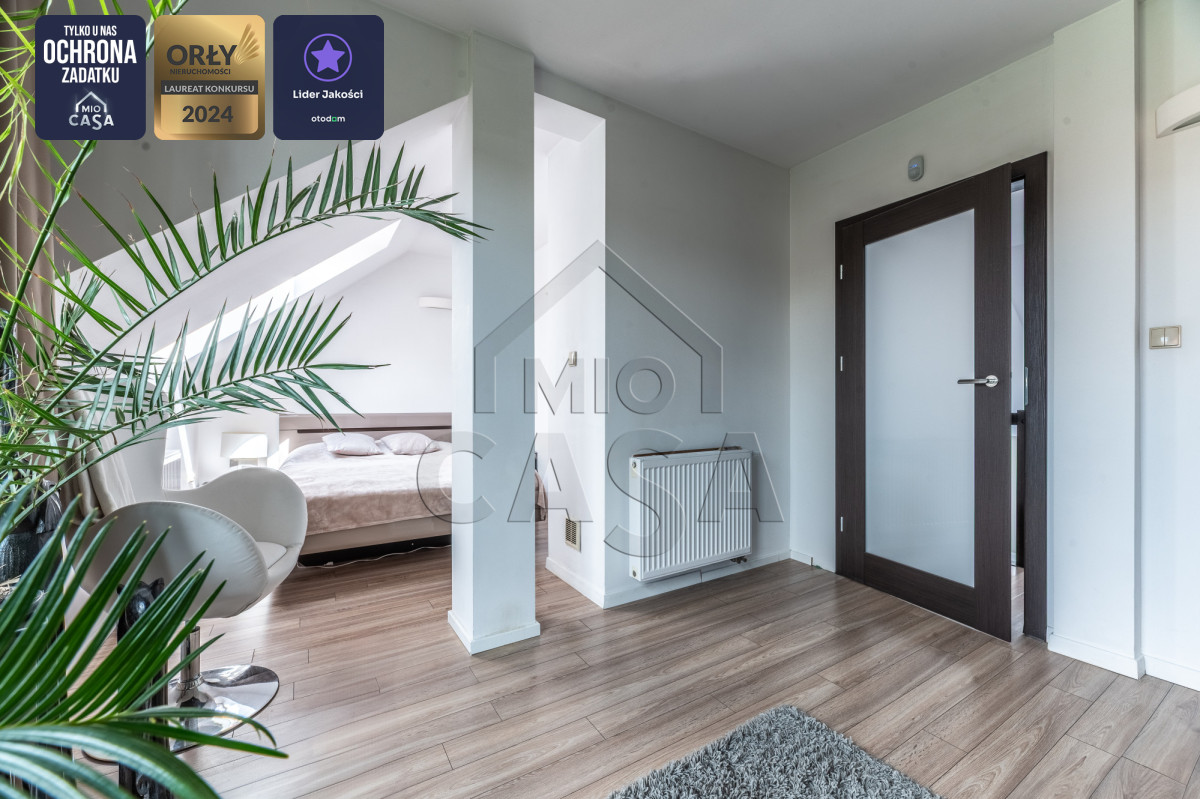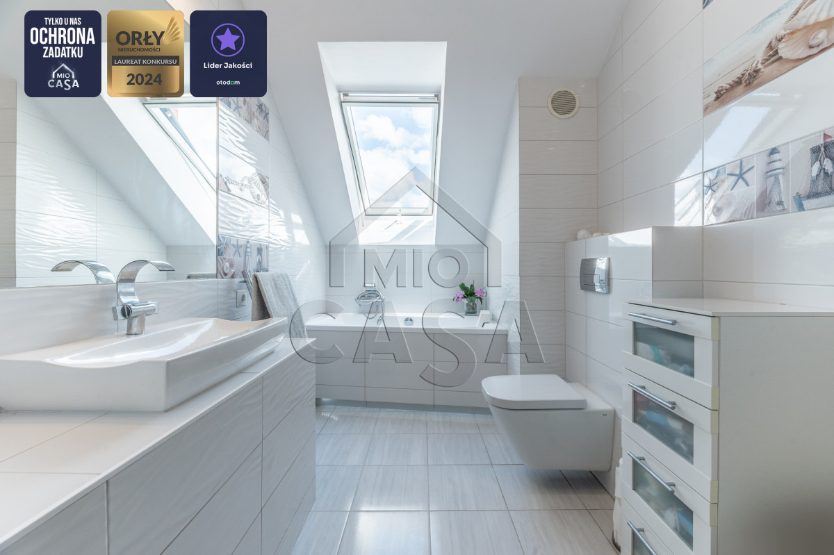- Strych ocieplony wełną mineralną z oknem dachowym – możliwość adaptacji.