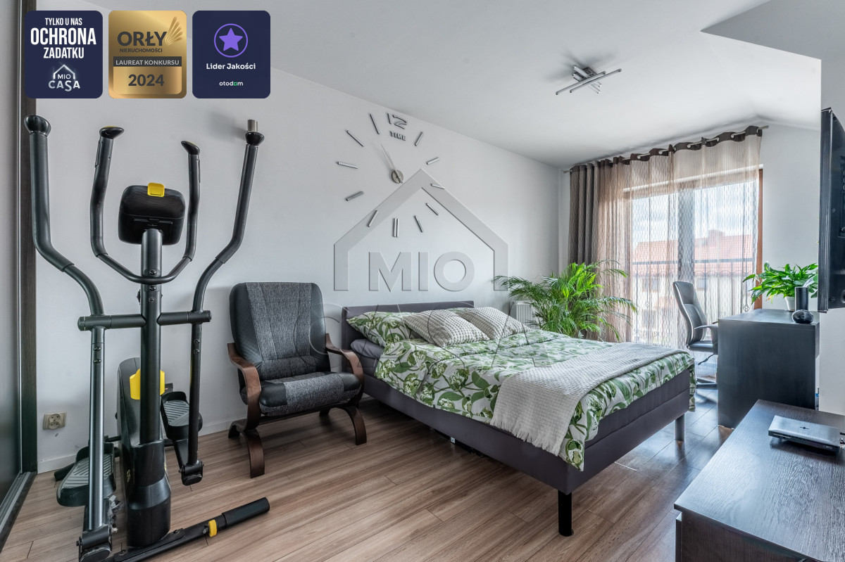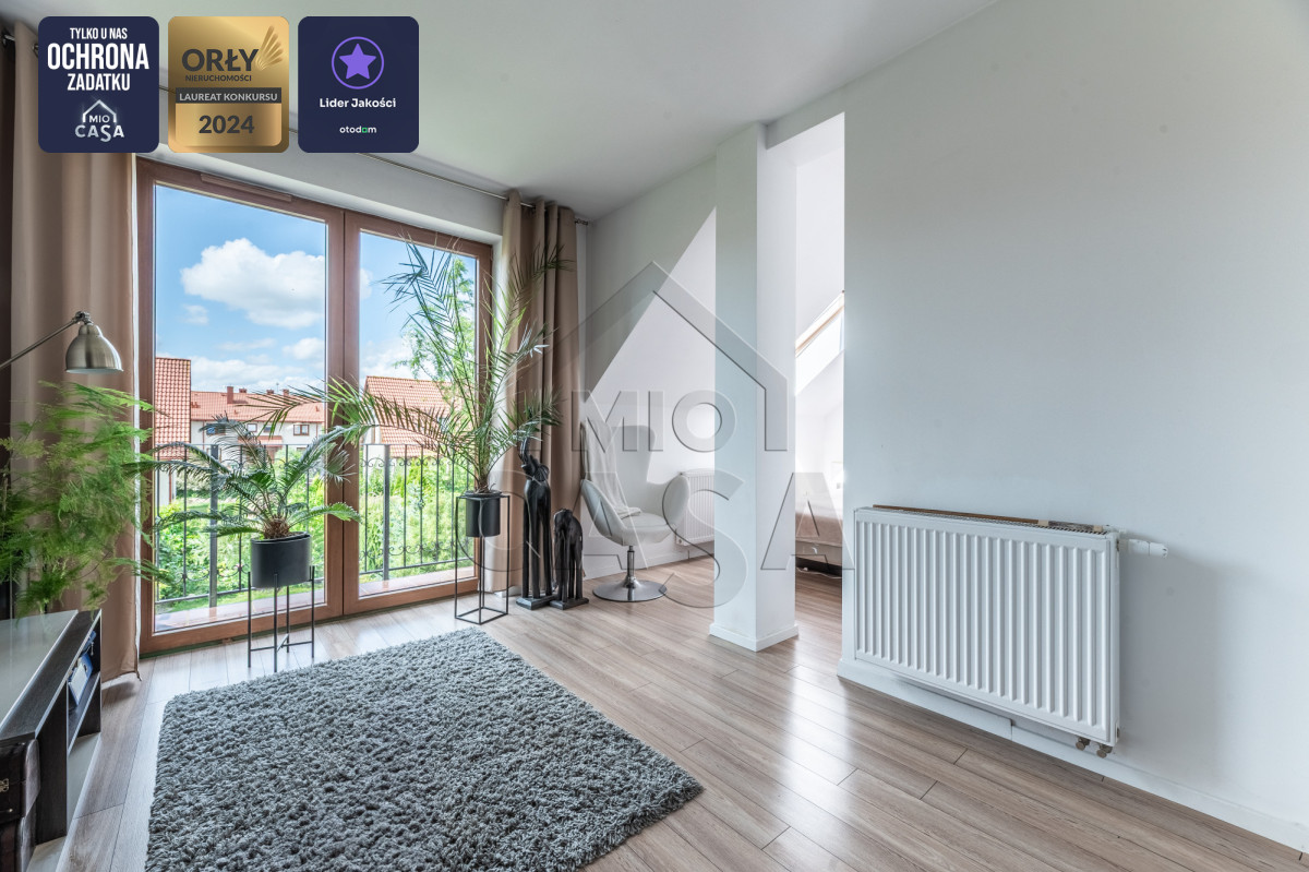 • 15,6 m² – z balkonem z widokiem na ogród,
