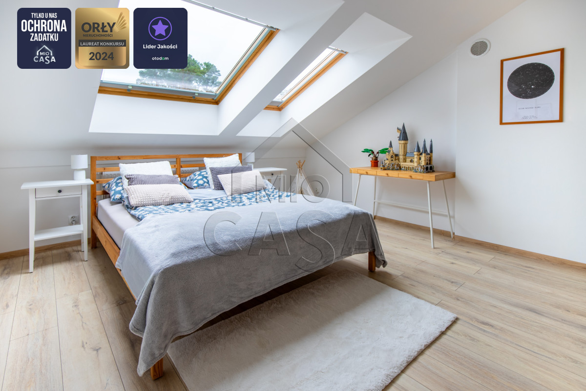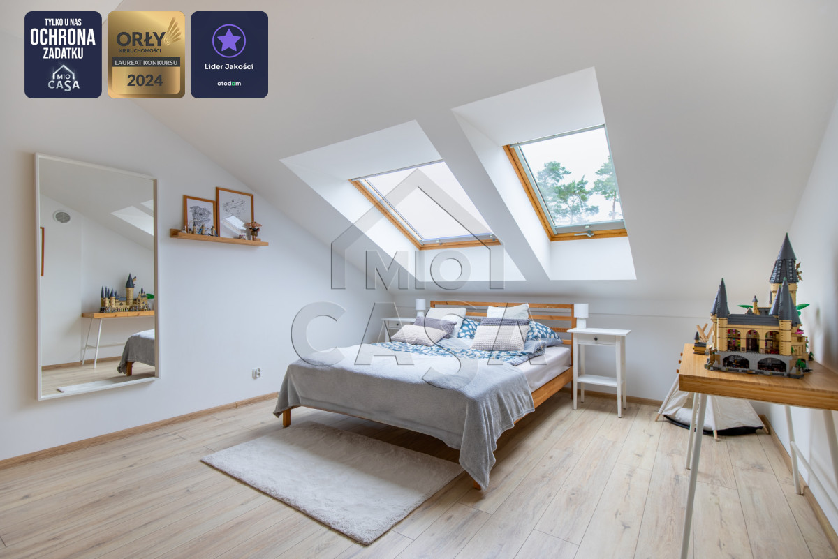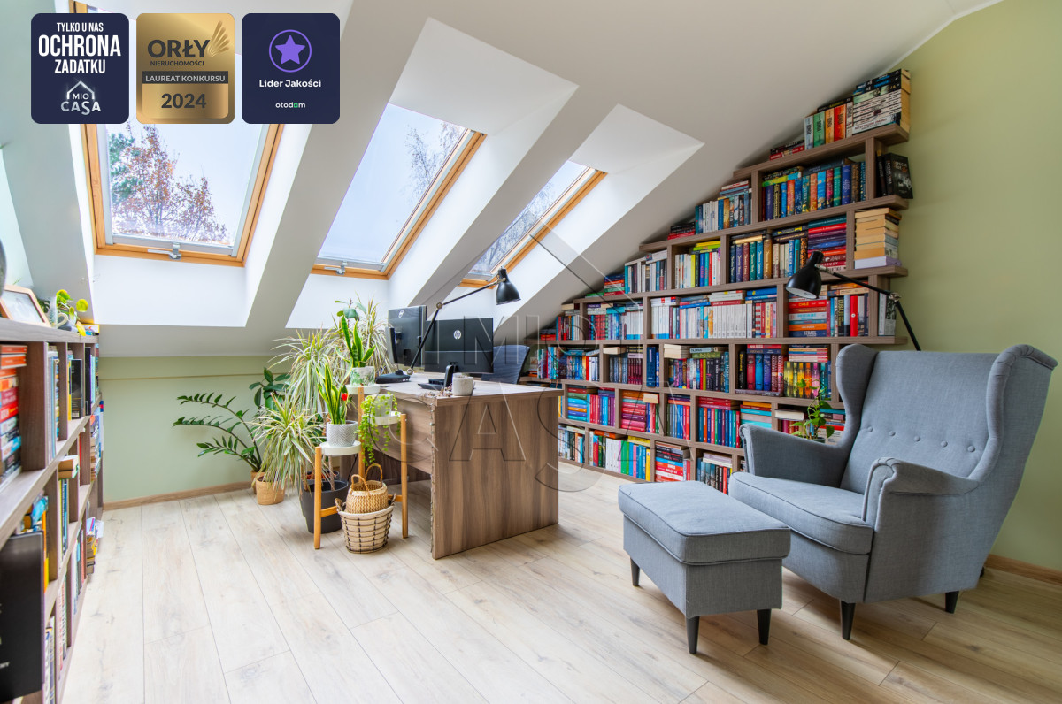 jasna sypialnia oraz gabinet z dużymi oknami połaciowymi,