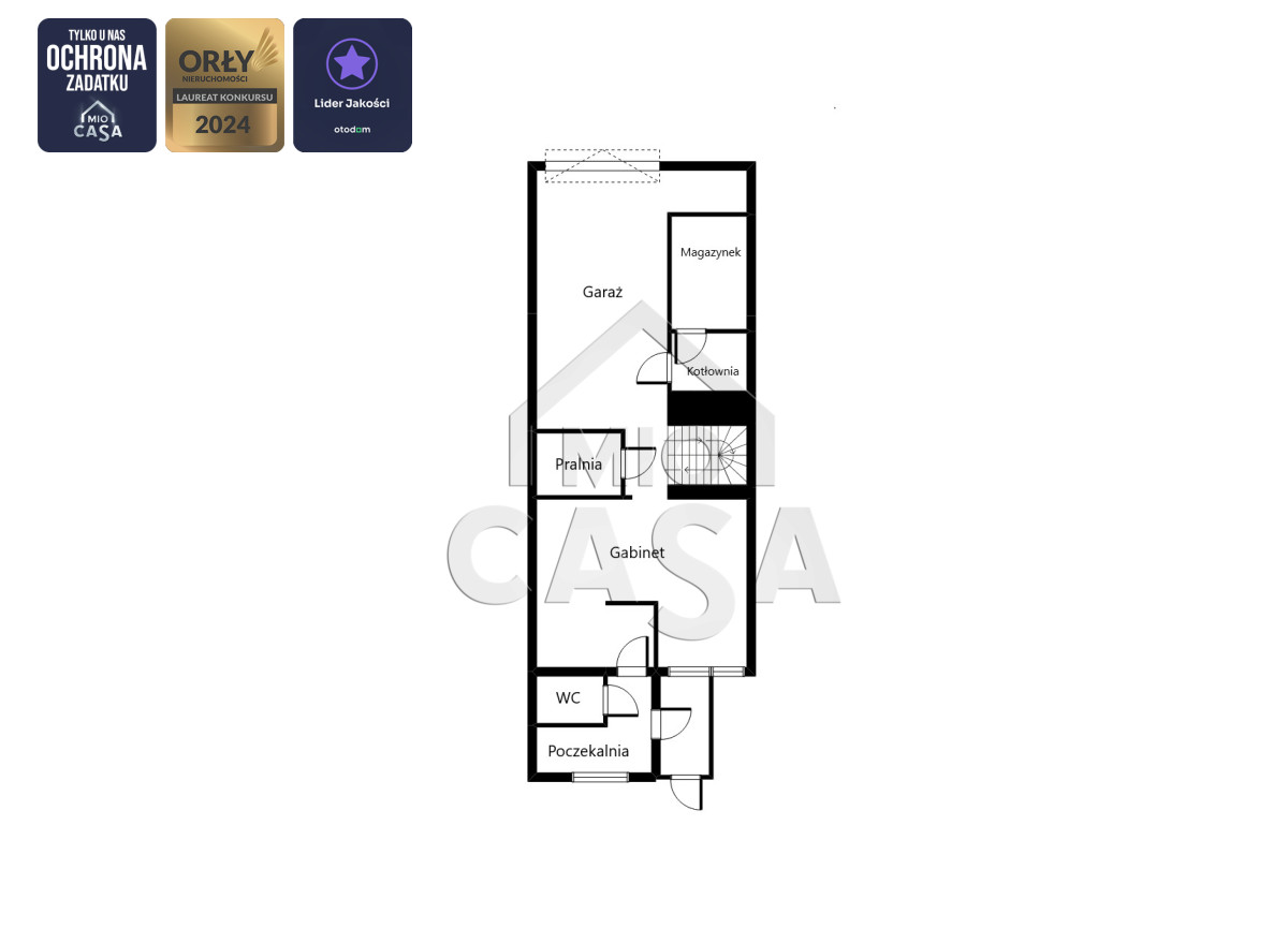 Dom składa się z części mieszkalnej, z wejściem od wewnętrznej uliczki oraz z części biurowej/gospodarczej z niezależnym wejściem od strony ulicy. Nowi właściciele mogą wykorzystać tę przestrzeń dla najemców i w ten sposób pokrywać bieżące koszty utrzymania domu, bądź utworzyć swoją przestrzeń biurową i prowadzić działalność gospodarczą.