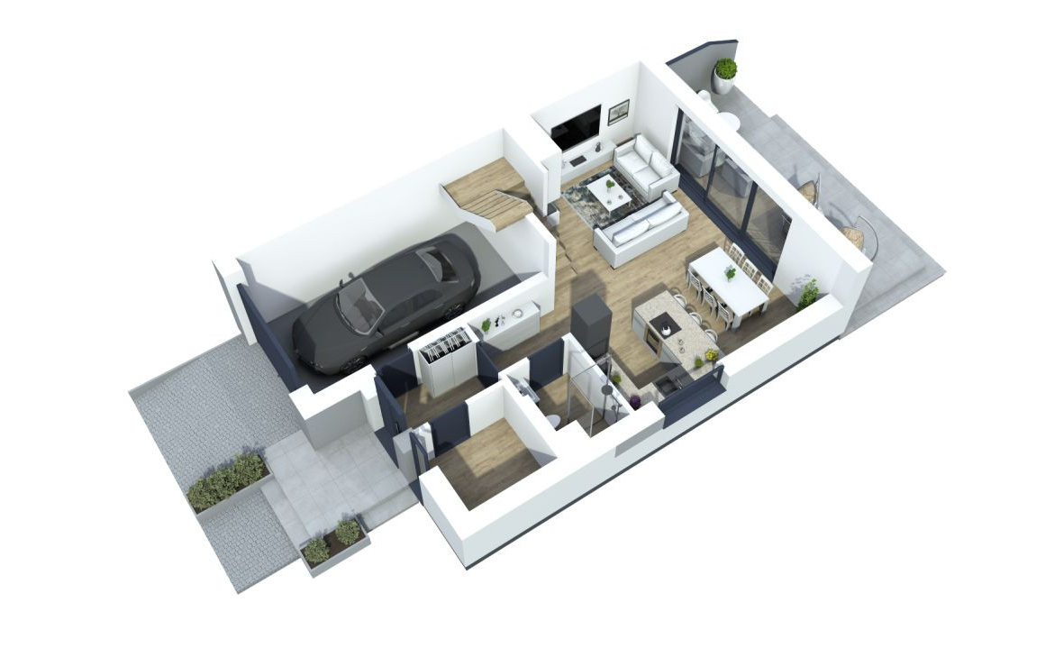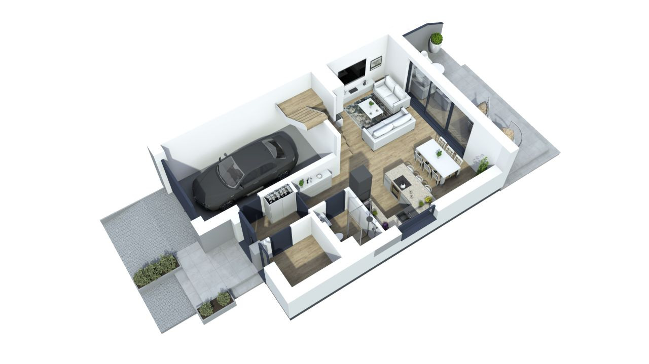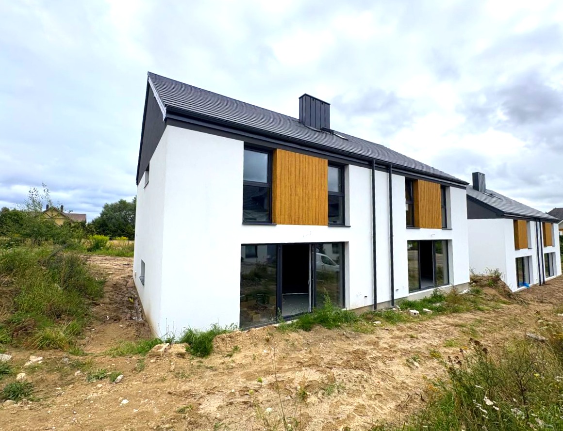 W ofercie znajduje się dom jednorodzinny w zabudowie bliźniaczej z garażem, o powierzchni użytkowej 128,34 m², z dodatkowym poddaszem użytkowym o powierzchni ok. 50 m² (po podłodze), które można zaaranżować według własnych potrzeb.