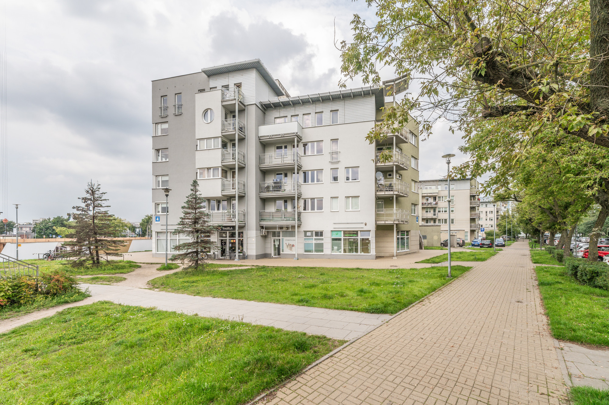 - Przede wszystkim ta lokalizacja dostarcza mieszkańcom rozbudowaną infrastrukturę. Na poziomie ulicy w budynku znajduje się szereg punktów usługowo-handlowych, jak sklep spożywczy, mięsny, papierniczy, Kolporter (i inne). W okolicy znajduje się wiele sklepów wielkopowierzchniowych, restauracje i kawiarnie, punkty usługowe, gabinety branży beauty, paczkomaty, siłownie, galerie handlowe, tereny zielone dla zwierząt oraz szereg innych obiektów. Warto zwrócić uwagę na placówki edukacyjne i medyczne – znajdziemy tu żłobki, przedszkola, szkoły, uczelnie a także placówki opieki zdrowotnej, w tym szpital.