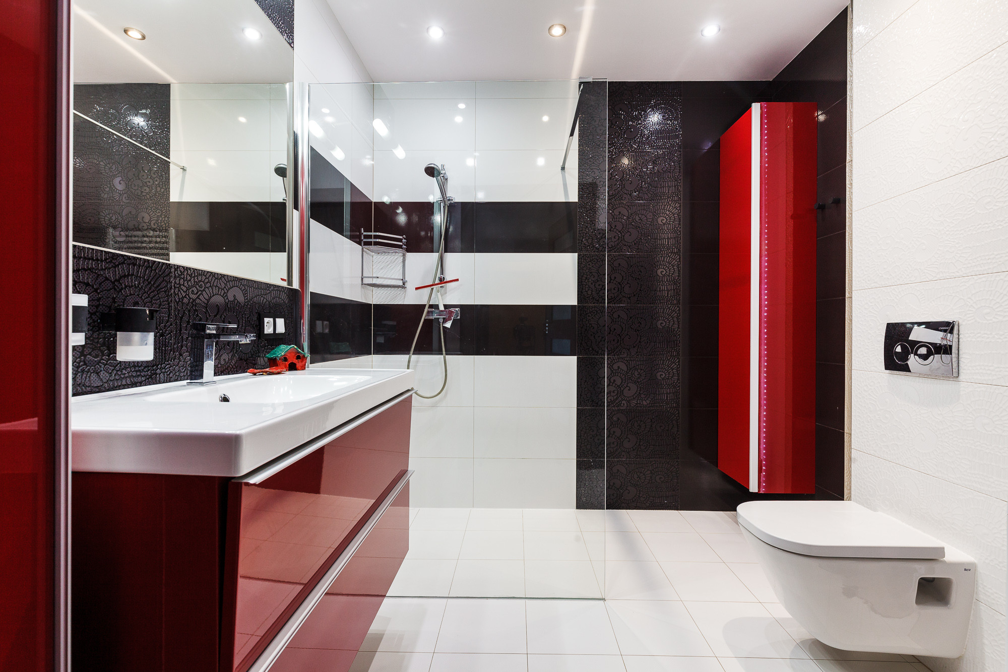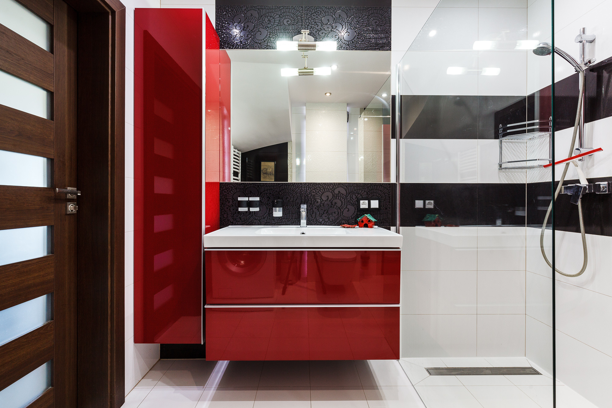 - Łazienka z nowoczesnym prysznicem walk-in,
