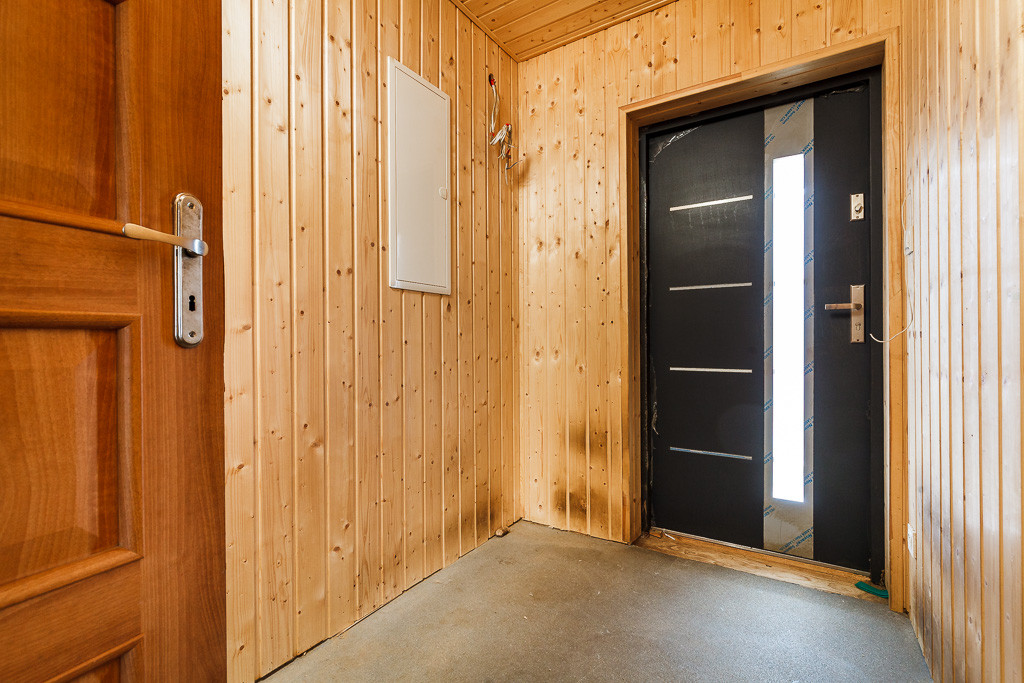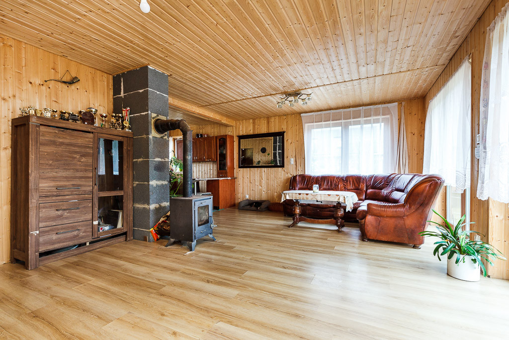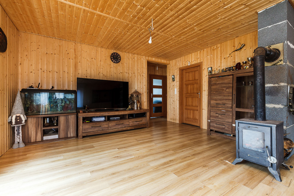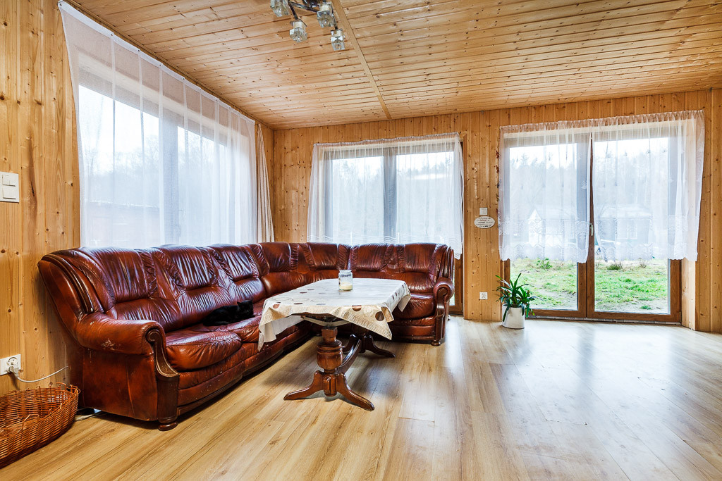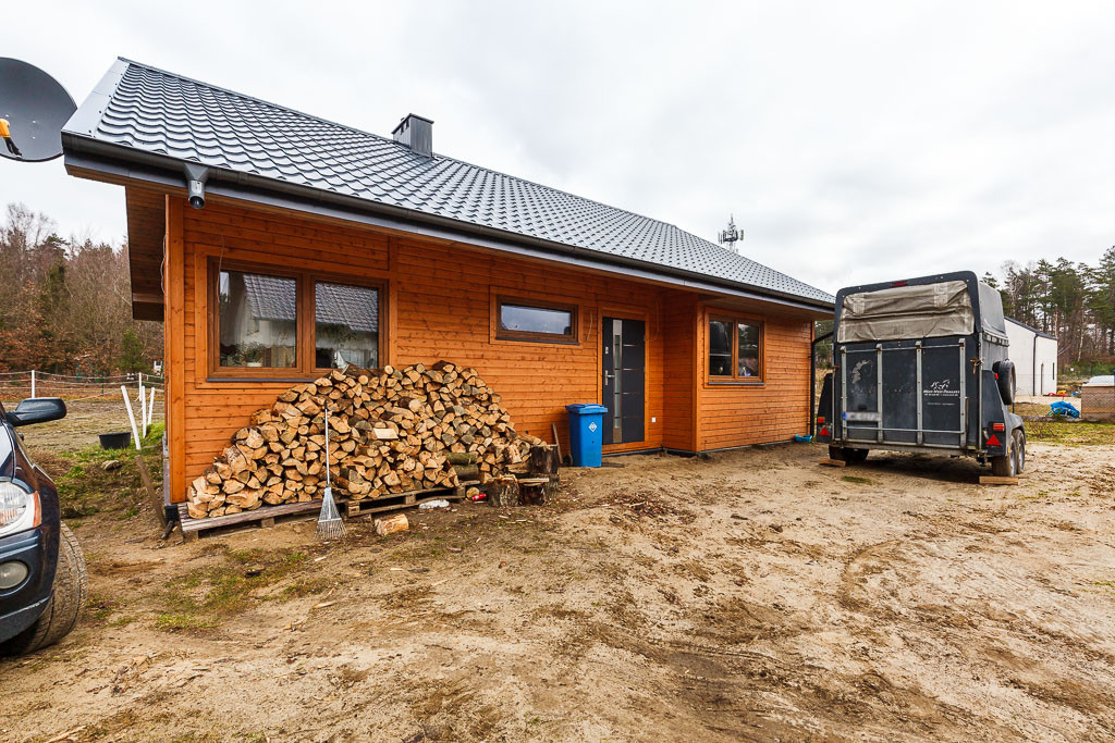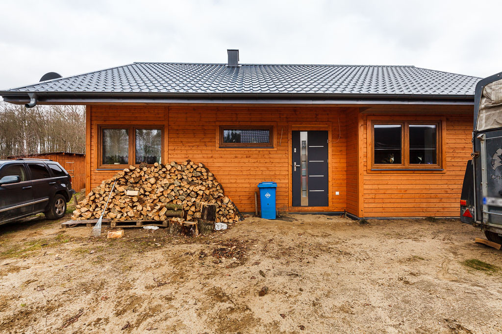 - Nieruchomość wybudowana z drewna skandynawskiego.