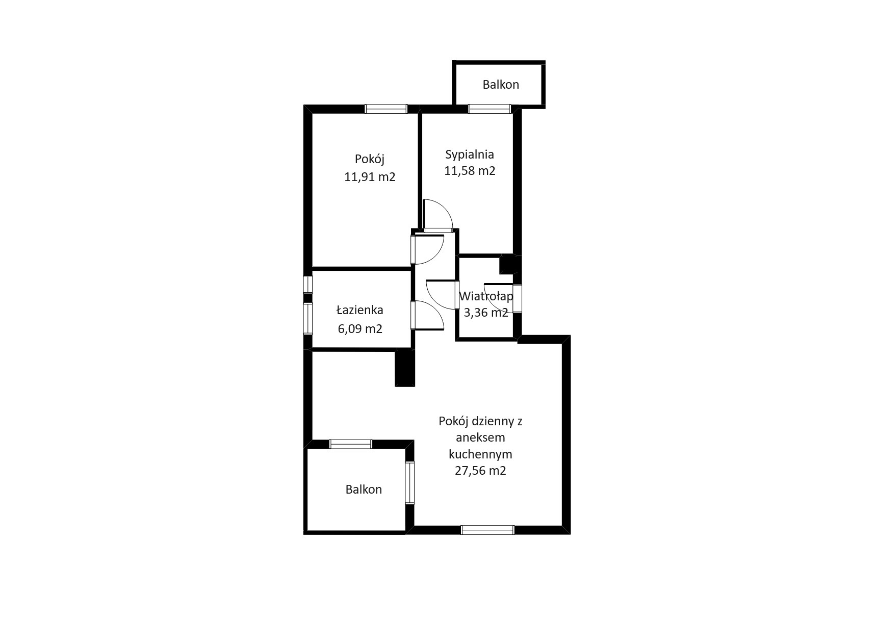 - dwa balkony – jeden od strony wschodniej, drugi od strony zachodniej