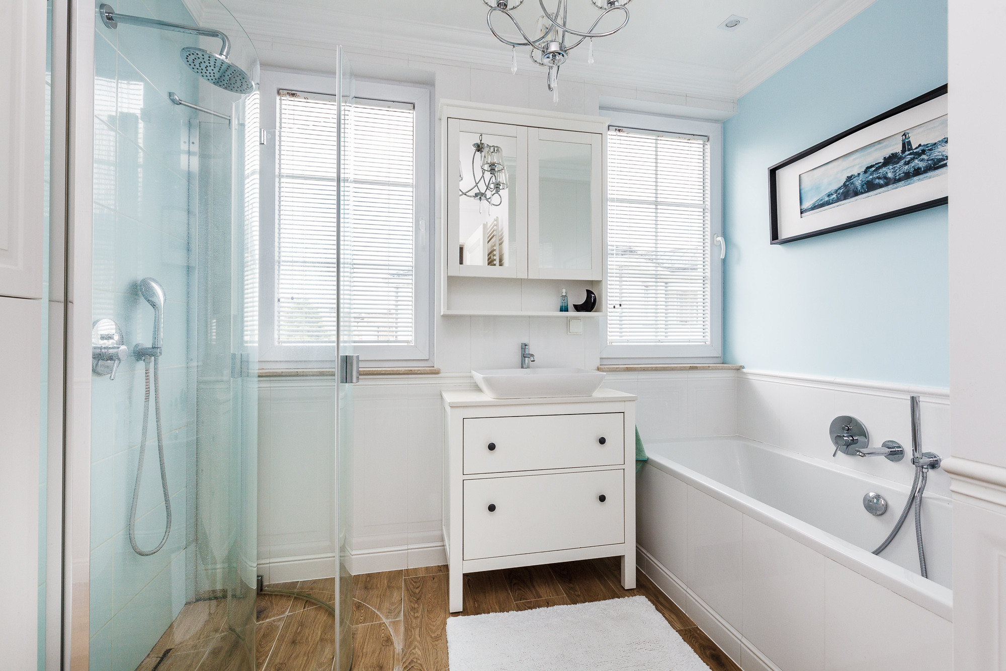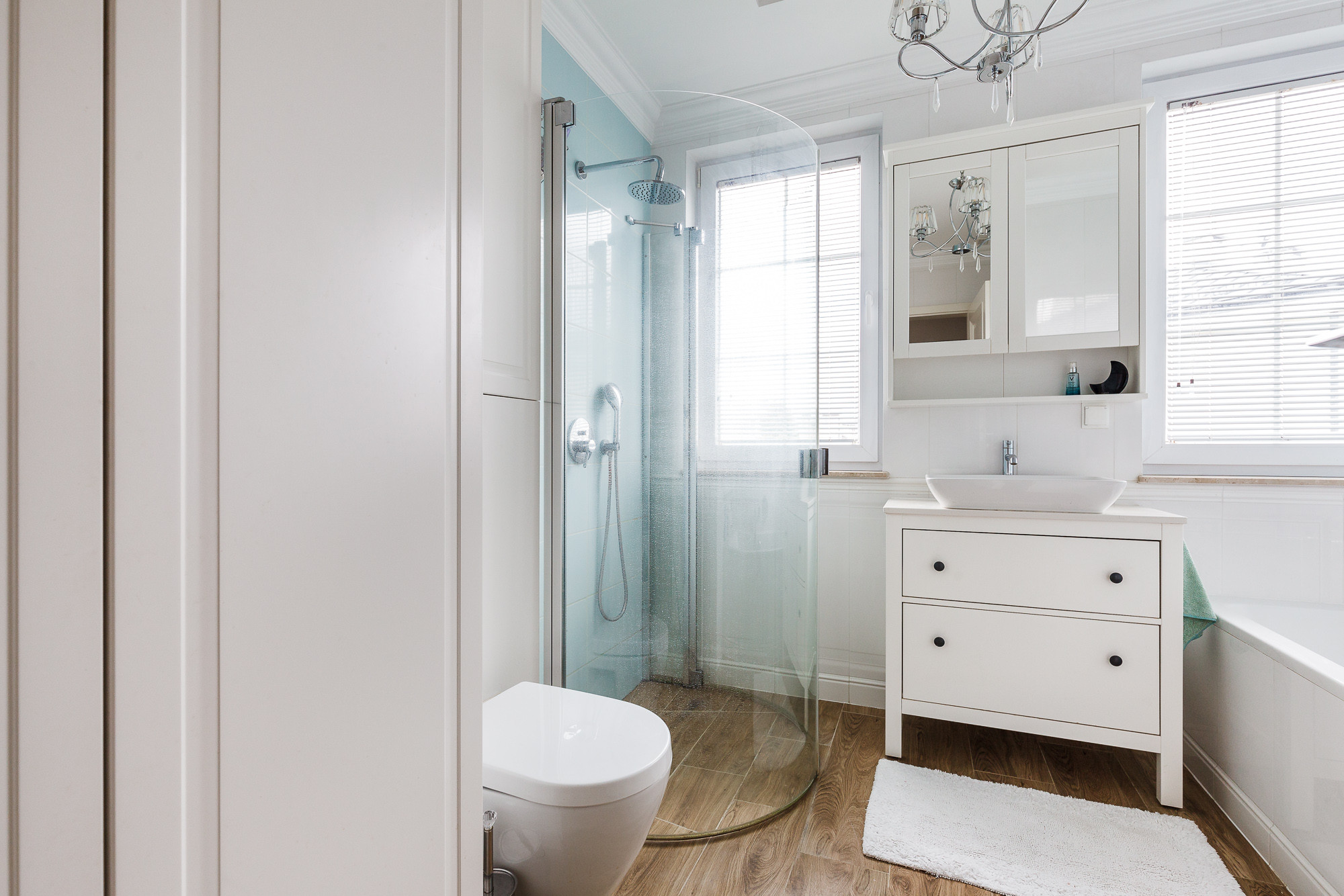 - Łazienka została zaprojektowana z myślą o wygodzie i luksusie – jest przestronna, posiada zarówno wannę, jak i prysznic, co daje pełną elastyczność w codziennym użytkowaniu.