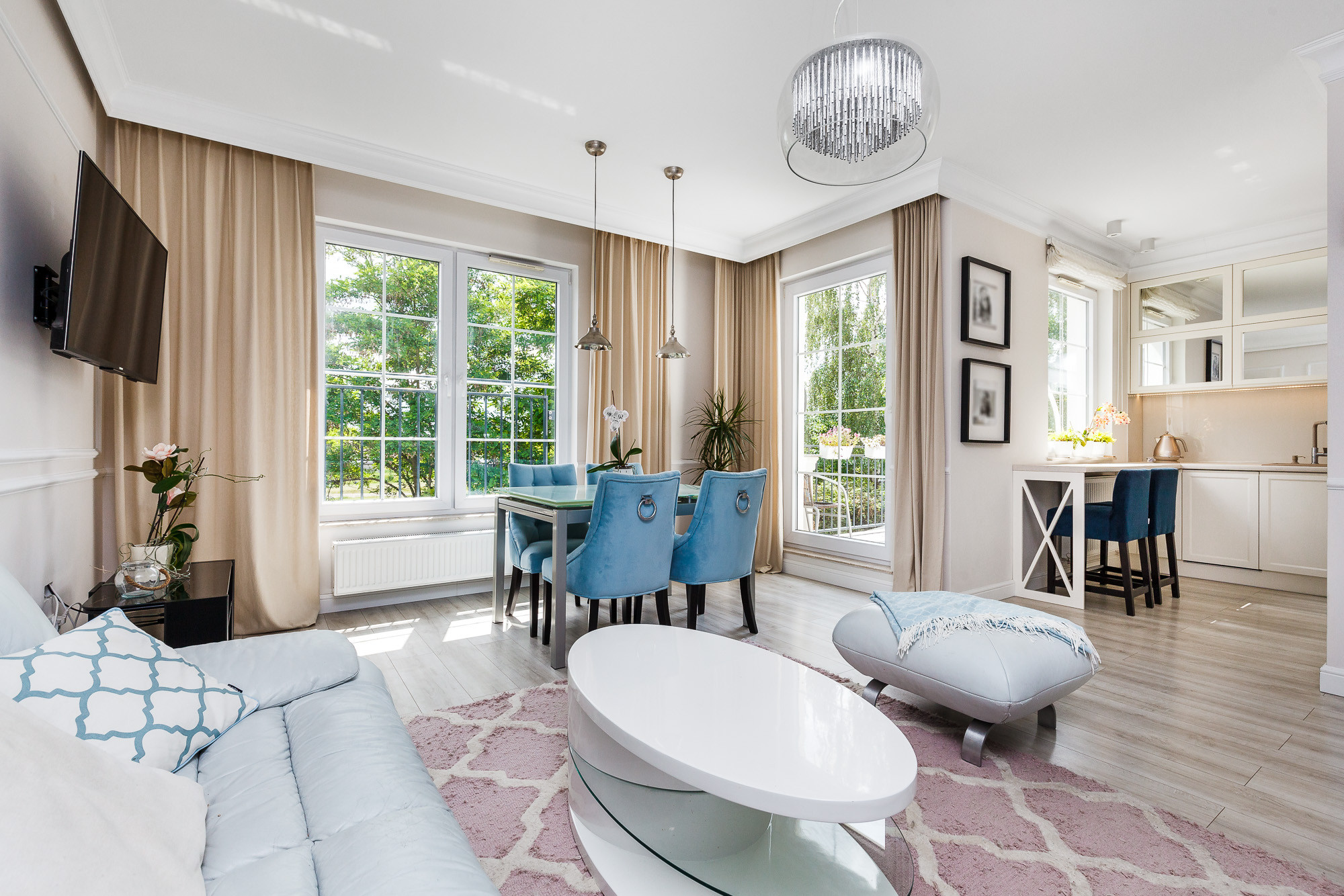 - Cena nieruchomości obejmuje zabudowy stałe, część mebli ruchomych oraz sprzęt AGD.