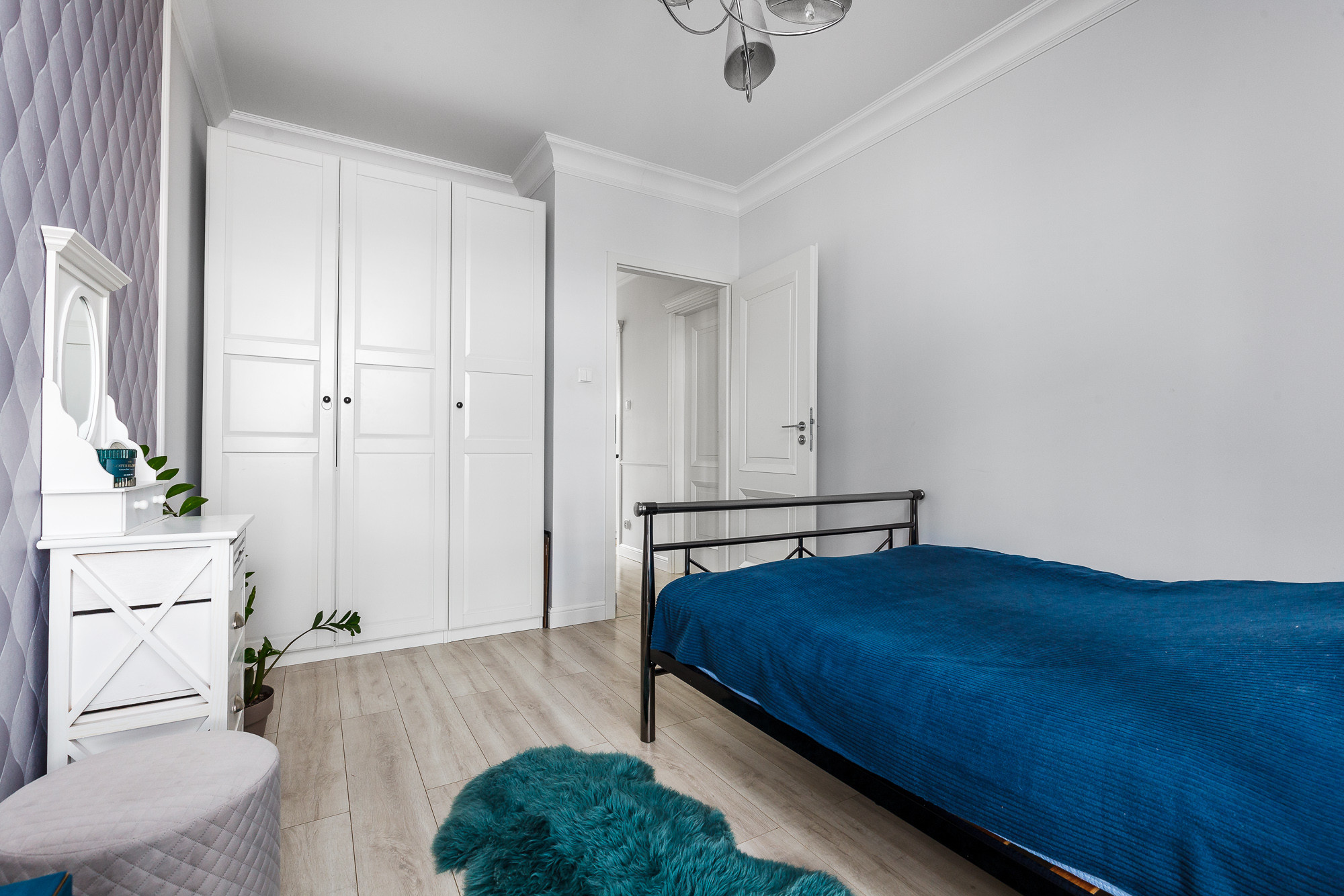 - Sypialnia z własnym wyjściem na drugi balkon zapewnia prywatną, spokojną strefę wypoczynkową.