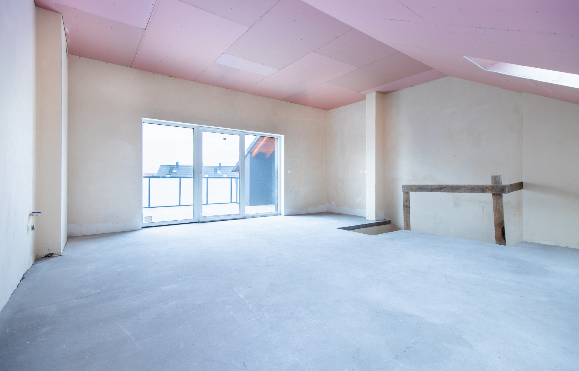 - II piętro – przestronne pomieszczenie 38,36 m2 do aranżacji na salon z aneksem kuchennym, oraz imponujący taras 24 m2,