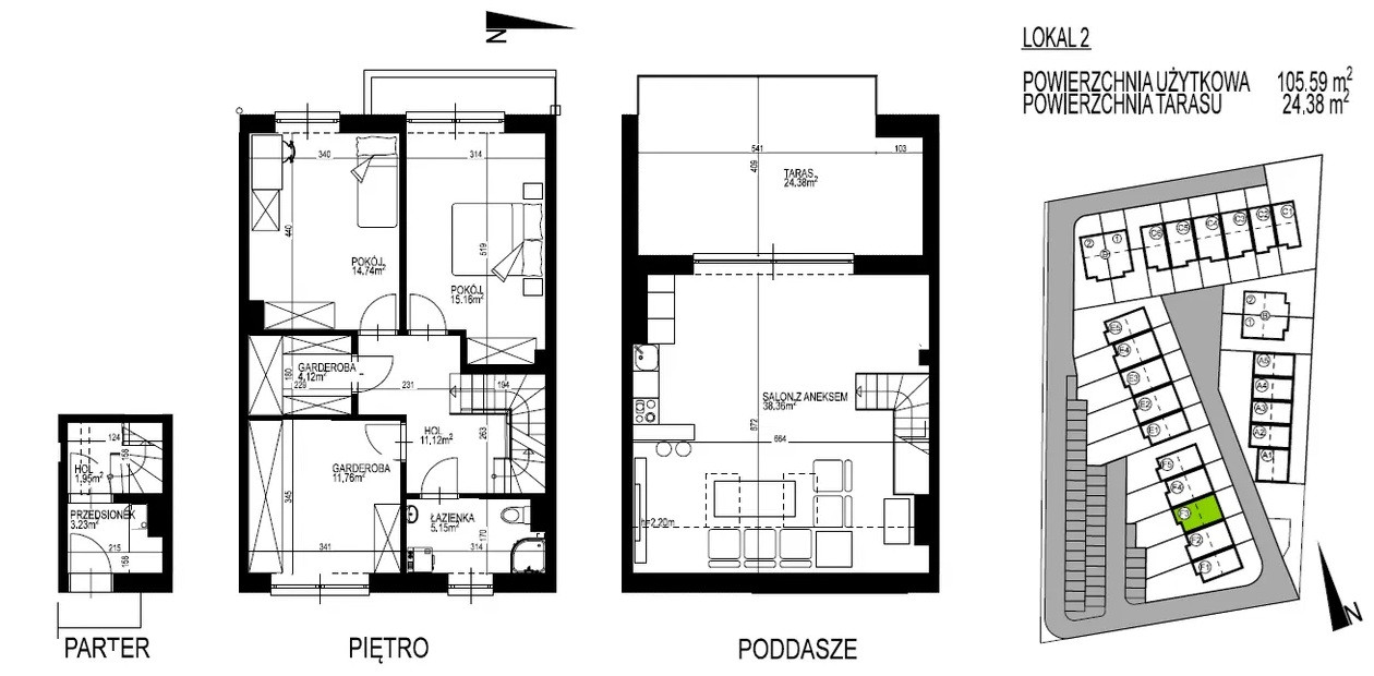 Zachęcam do zapoznania się z ofertą wyjątkowego mieszkania (górnego) w zabudowie szeregowej z 2025 roku, z bardzo dużym nasłonecznionym tarasem, trzema własnymi miejscami postojowymi oraz przestrzenią do własnej wizji i aranżacji – stan nieruchomości: do wykończenia!