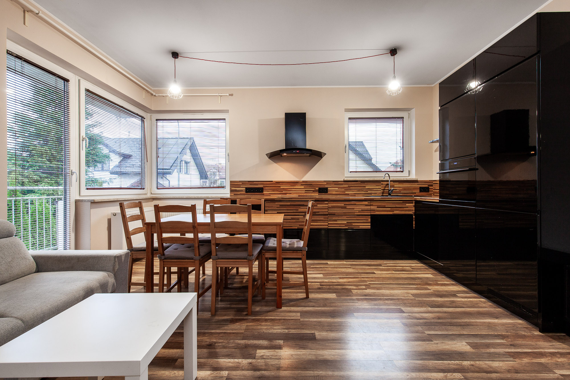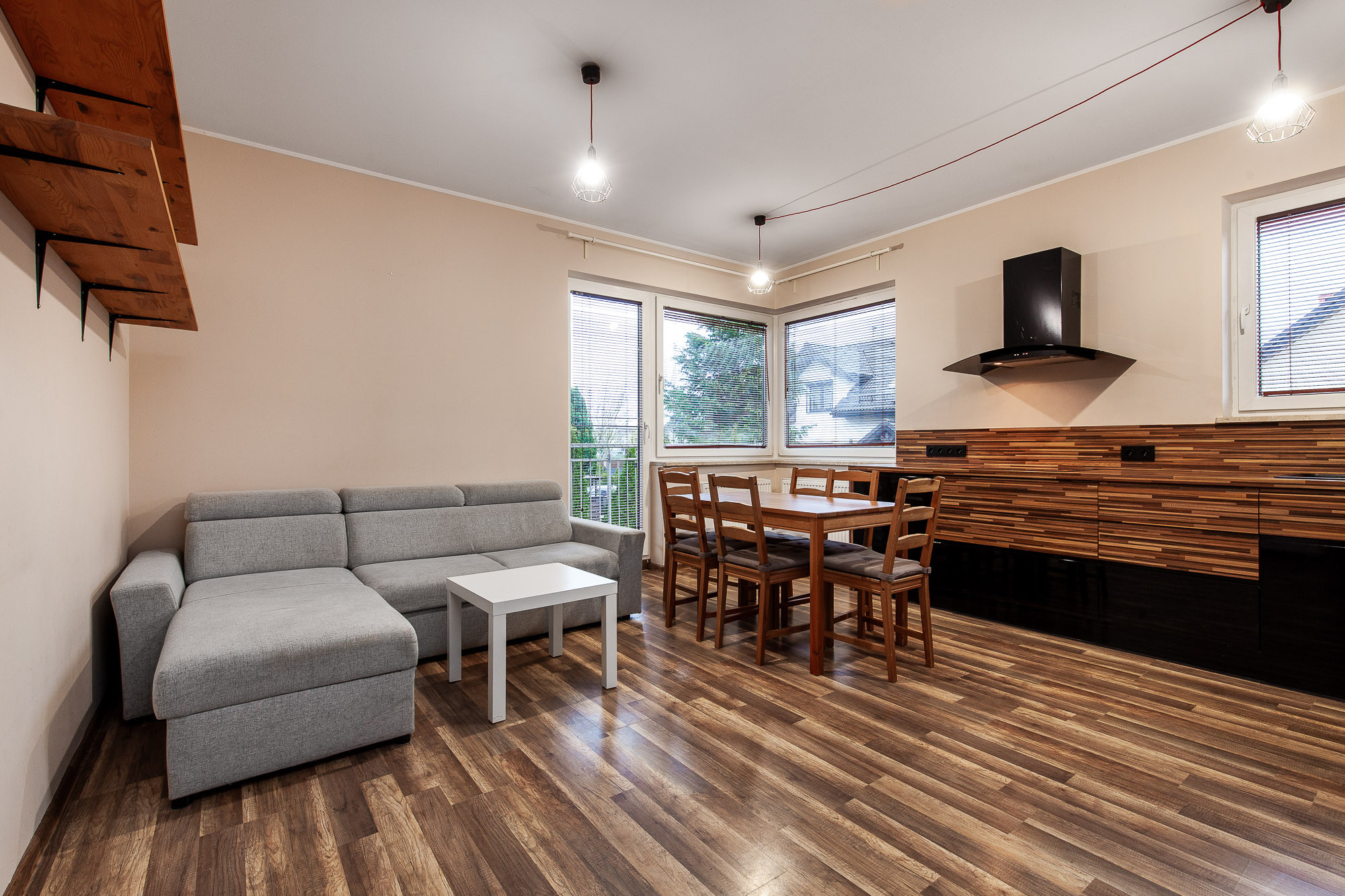 - przestronnego salonu z aneksem kuchennym
