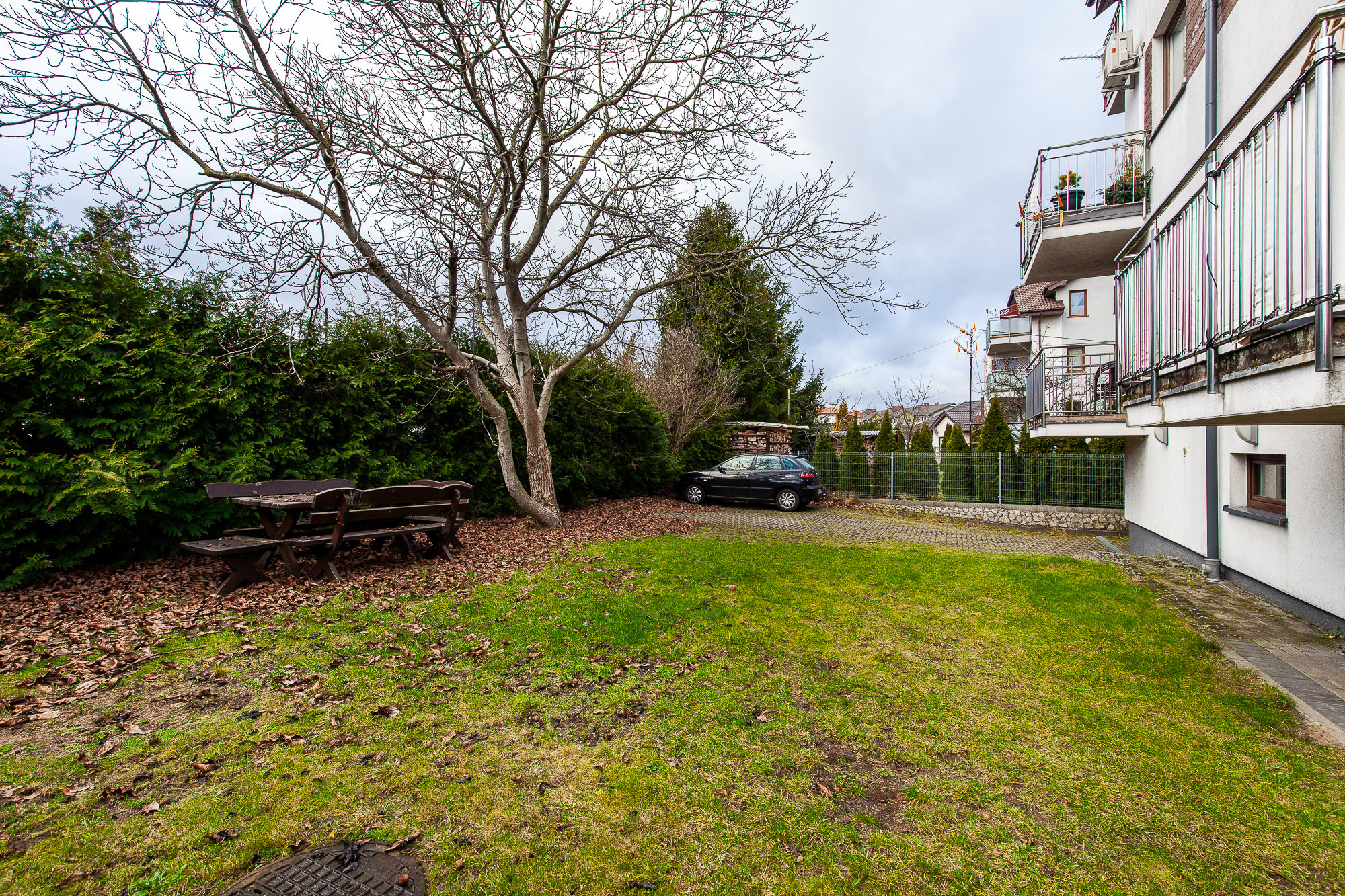 - przy budynku znajdziemy również miejsca postojowe odgrodzone bramą