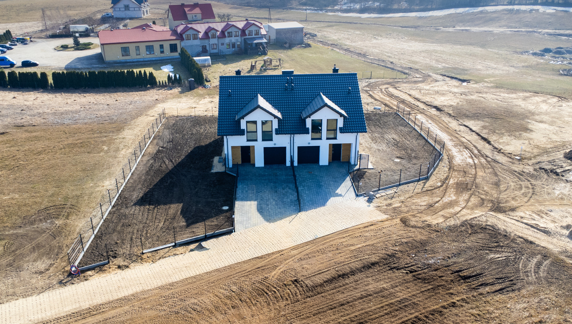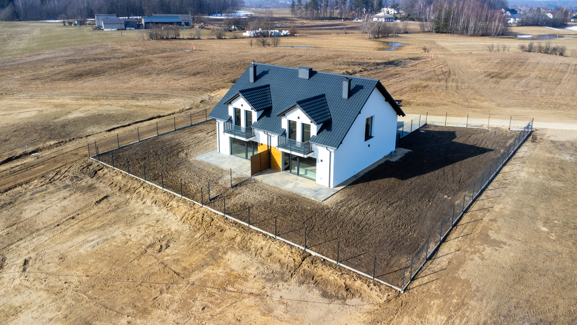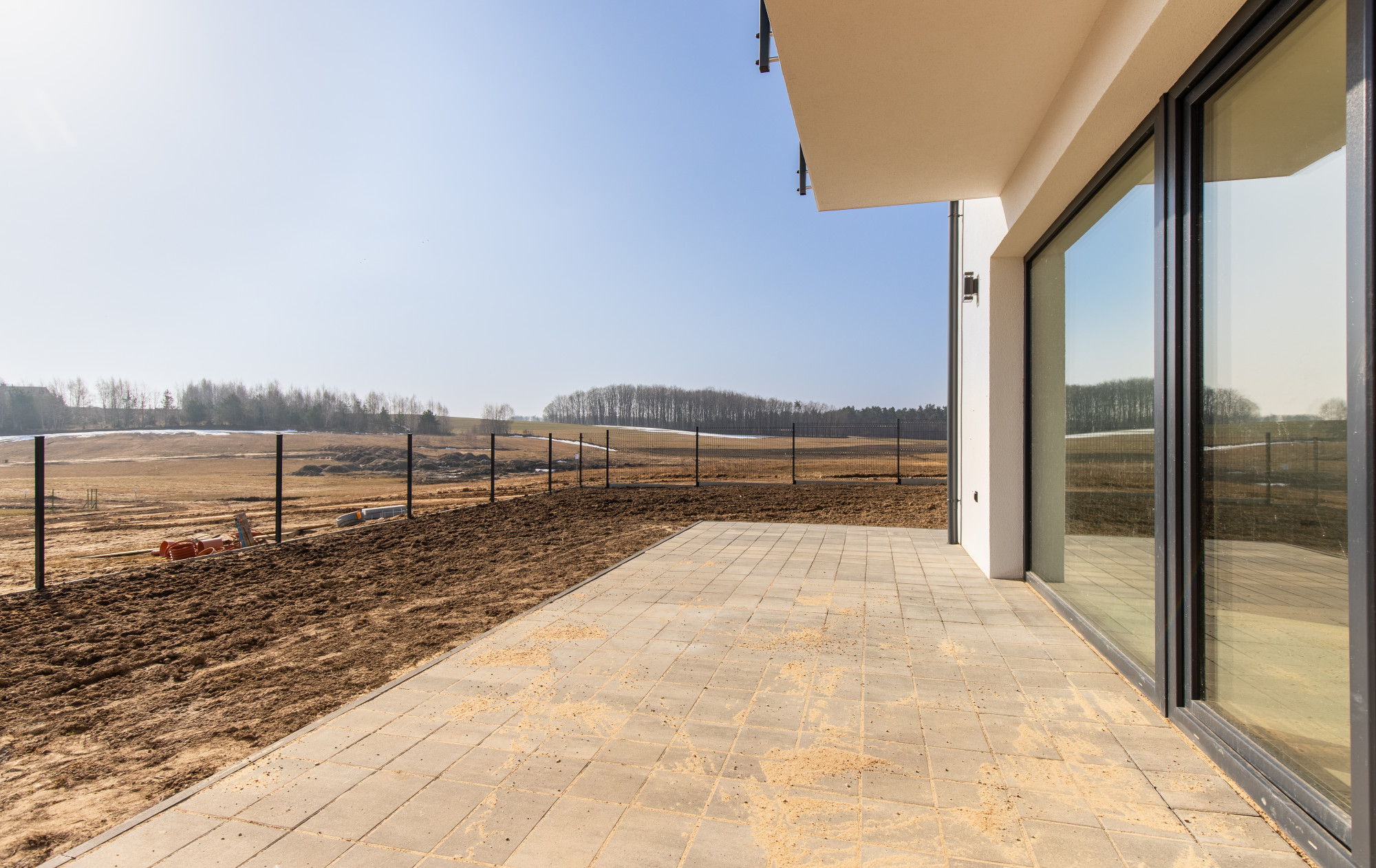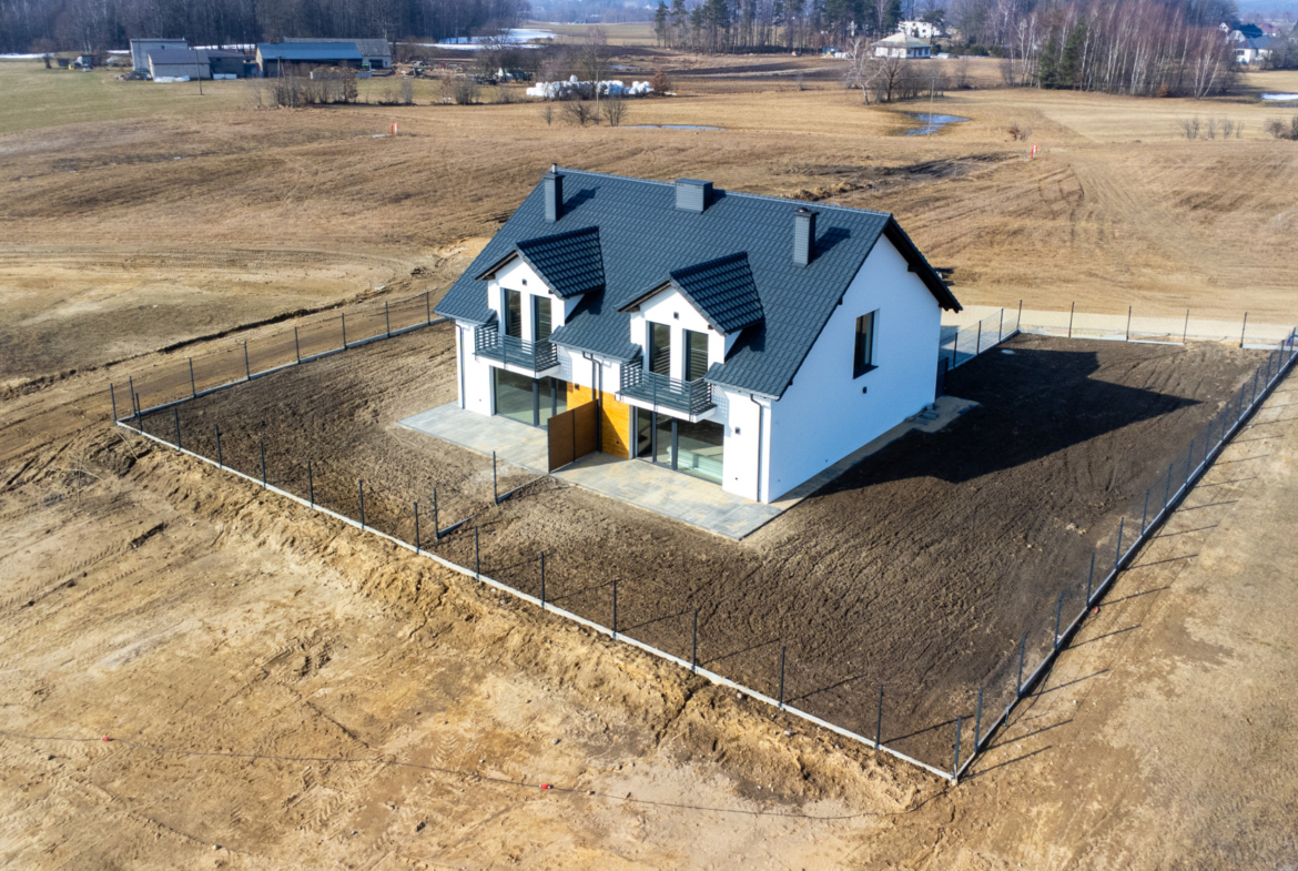 - instalacje: prąd, woda, szambo, instalacja alarmowa, kamery, domofon, TV, światłowód, sterowanie ogrzewaniem z każdego pomieszczenia, oświetlenie zewnętrzne z gniazdkami,